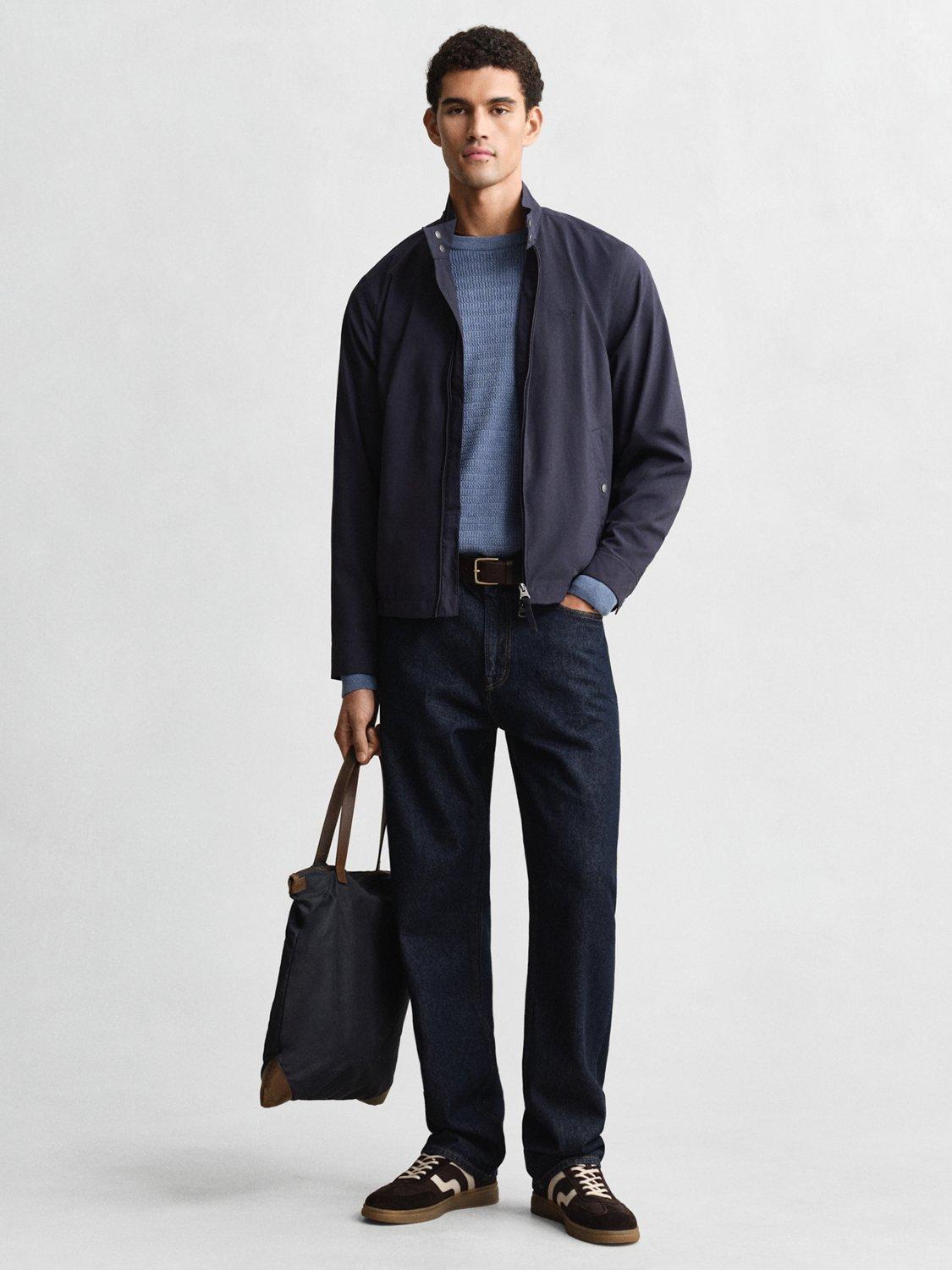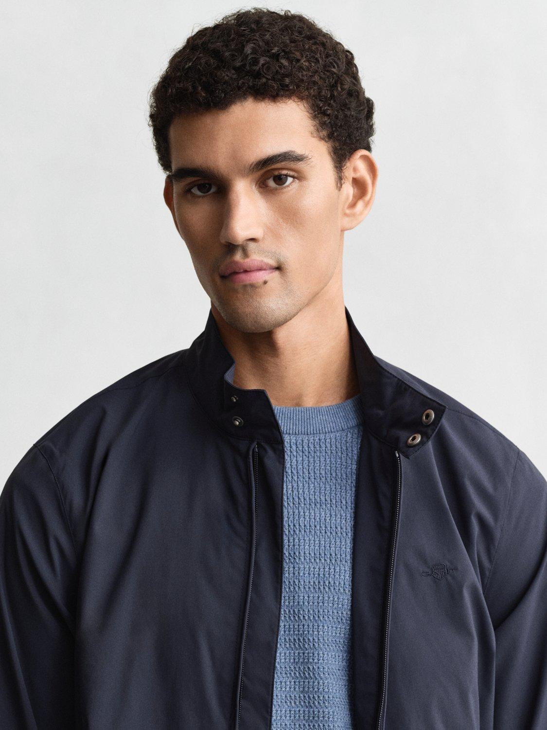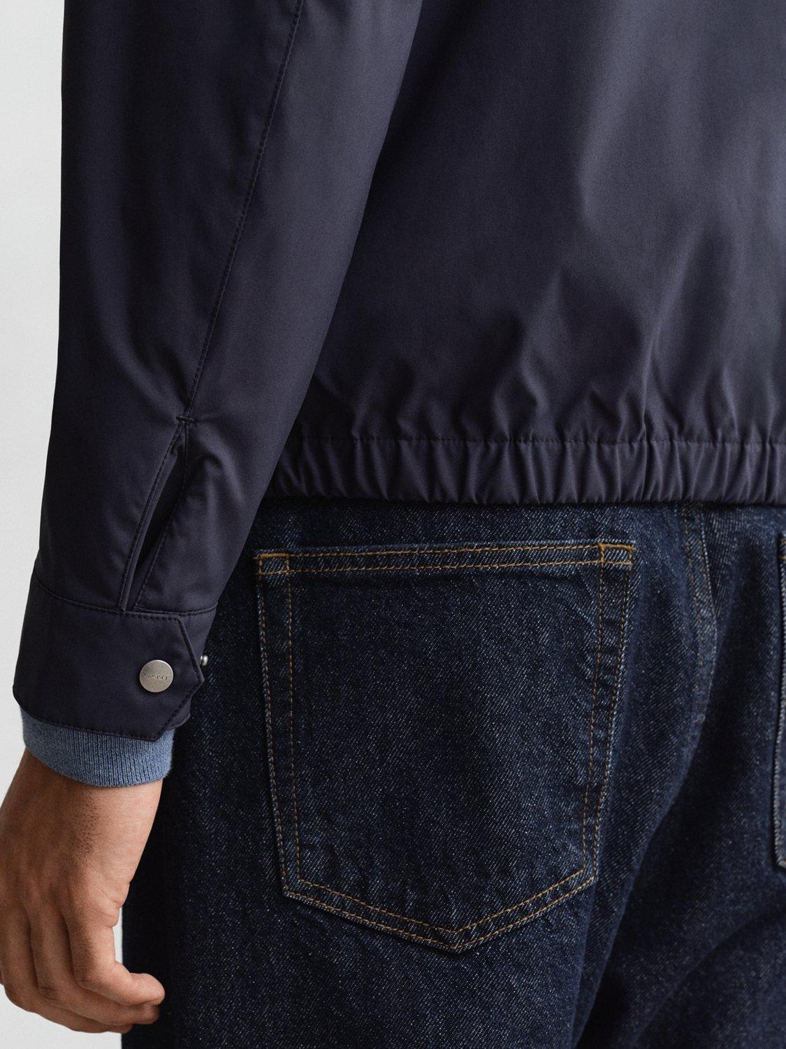 This Harrington-style jacket blends classic design with modern functionality. Made from 100% recycled polyester, it’s treated with a water-repellent finish and cut for a regular fit. It features a stand-up collar, zip closure, and elasticated hem for a clean silhouette. Exterior details include welt pockets, buttoned cuffs, subtle logo embroidery at the chest, and a locker loop at the back. The interior is fully lined and includes two practical pockets.