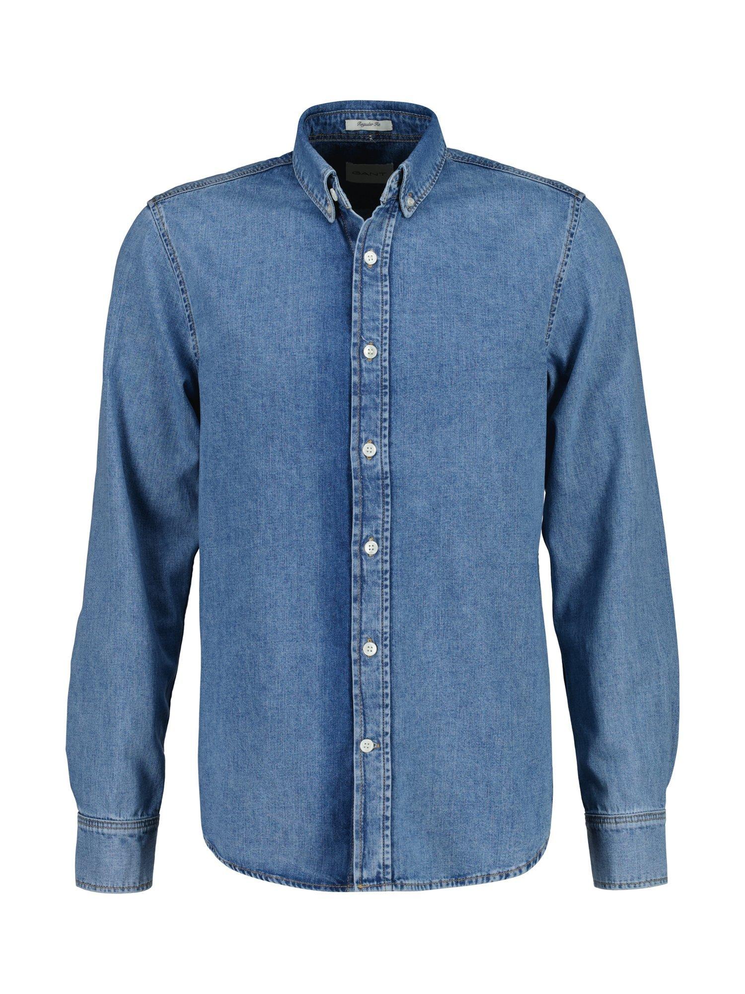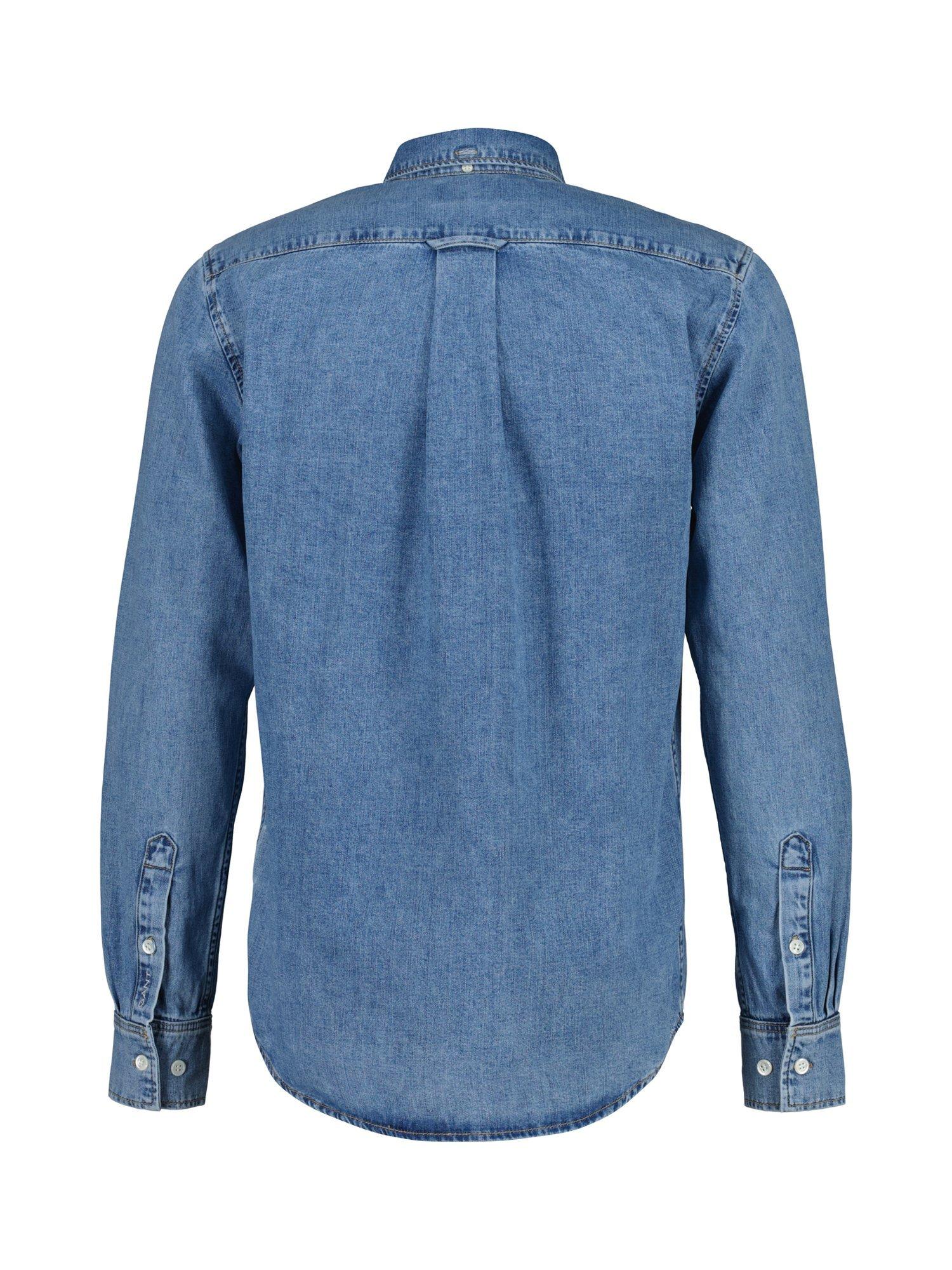 This denim shirt from GANT is made from indigo cotton and garment-washed for a softer feel. A timeless wardrobe essential, it’s designed in a regular fit and features a classic point collar, adjustable cuffs, a curved hem, and embroidery at the sleeve placket. The back is finished with a box pleat and Gant’s signature locker loop.