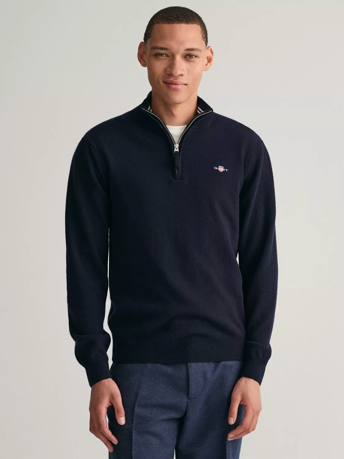 Versatile, classic, and always smart, this crew neck sweater is crafted from 100% lambswool. Detailed with ribbed detailing and the classic GANT shield embroidered at the chest, this sweater pairs well with jeans, tees and button-down shirts alike.