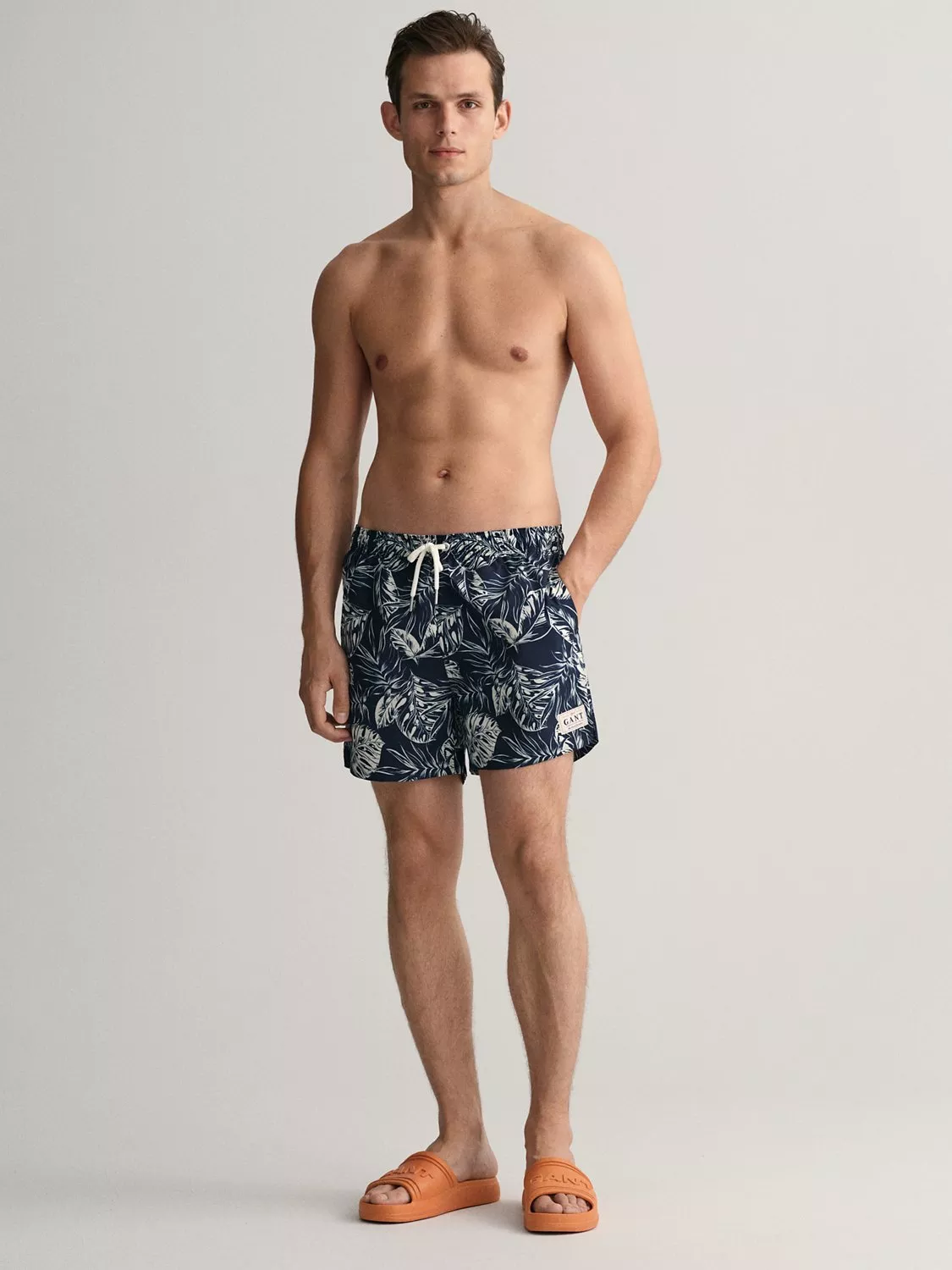 Perfect for the pool and beach, these leaf print swim shorts are made from a blend of recycled plastics helping to reduce single-use waste.