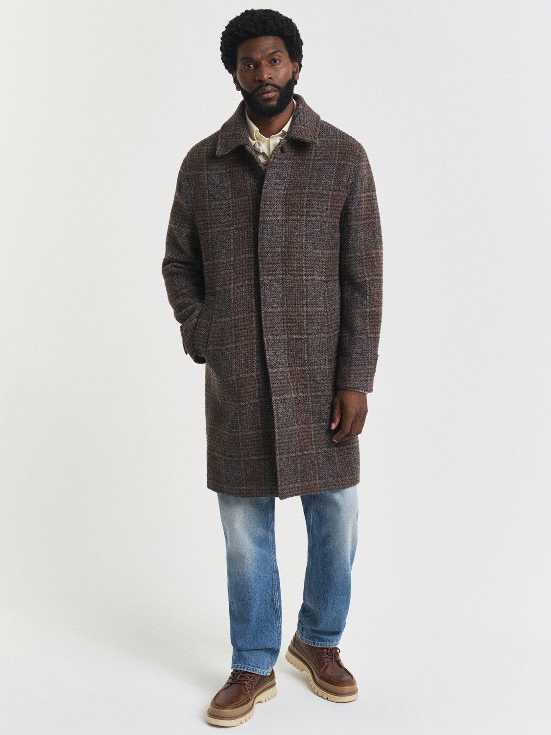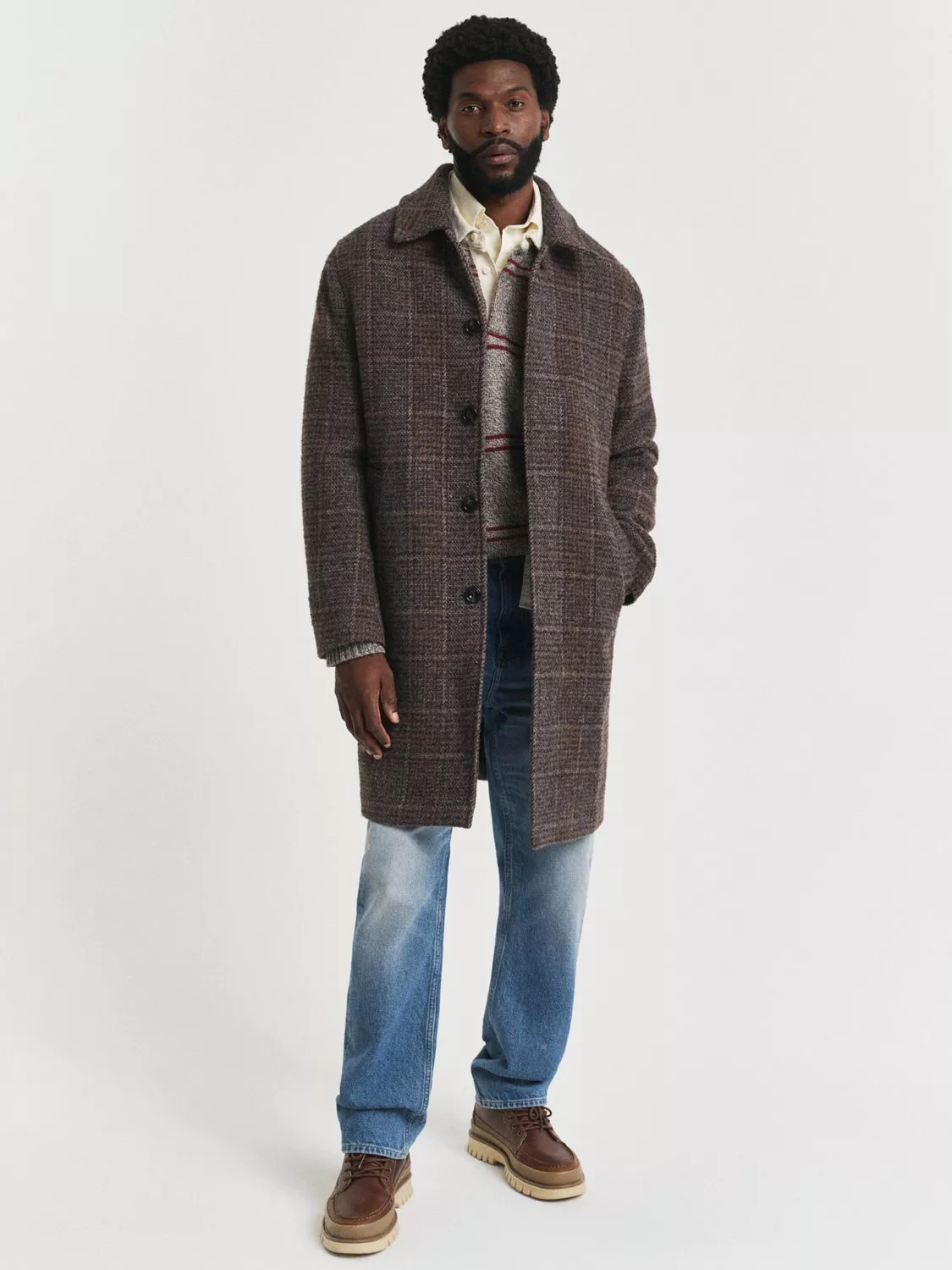 This updated car coat is ideal for transitional seasons. Made from a luxurious Italian wool blend, it offers a regular fit and falls just above the knees. The coat features a concealed button closure at the front, a point collar, welt pockets, and a back vent for easy movement.