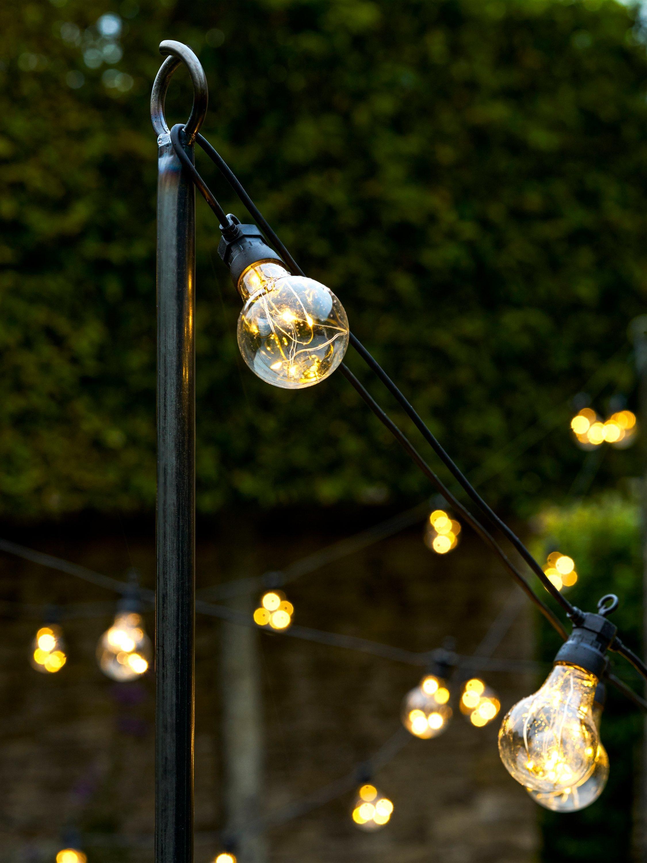 Ideal for gardens with limited fencing or trees, so you can still enjoy the beauty of the lights without the worry of where to fix them. Each pole has two split lengths with a full height of 235cm, and the pole simply pushes into the soil for complete stability. The whole Festoon range will add a finishing touch to the garden to enjoy all summer.