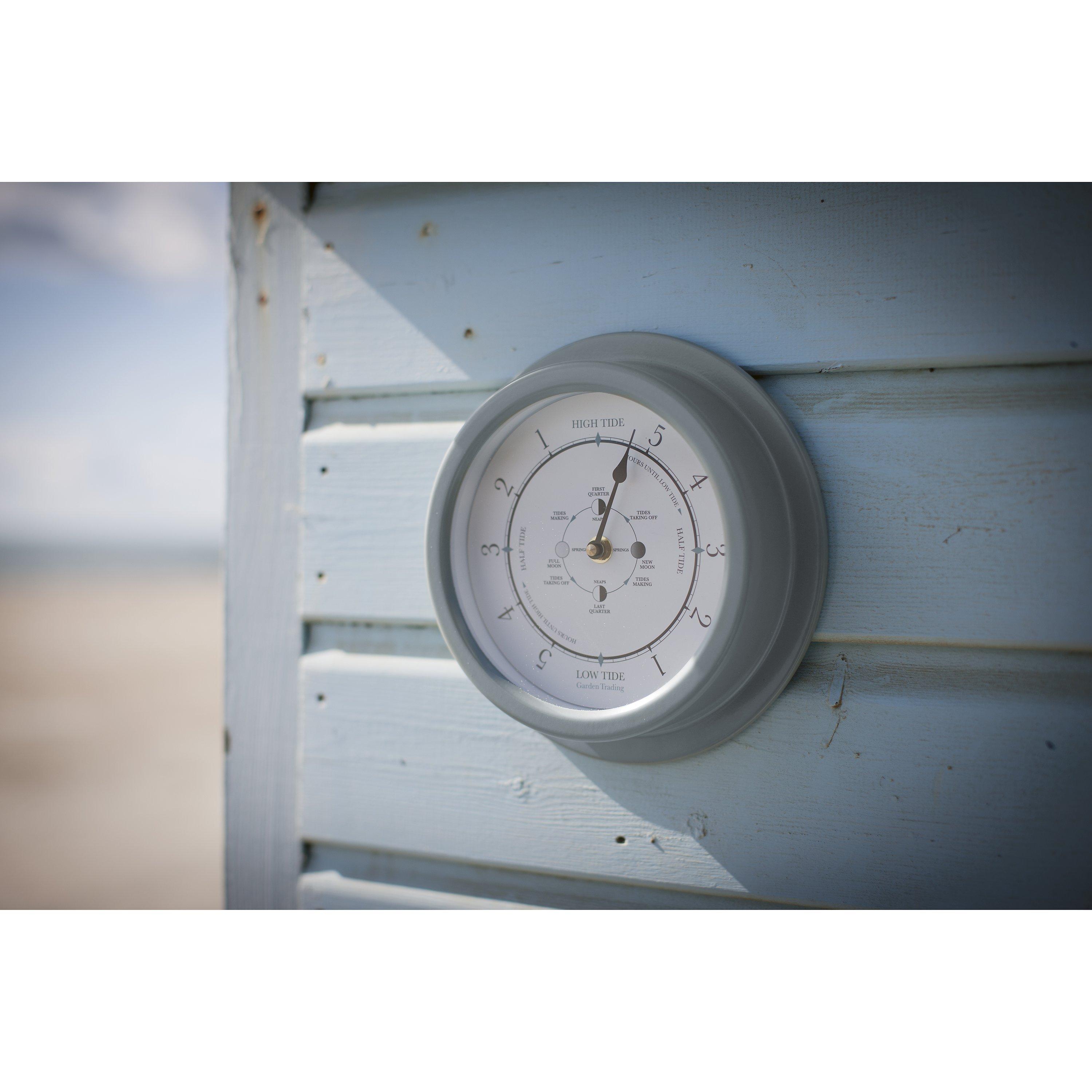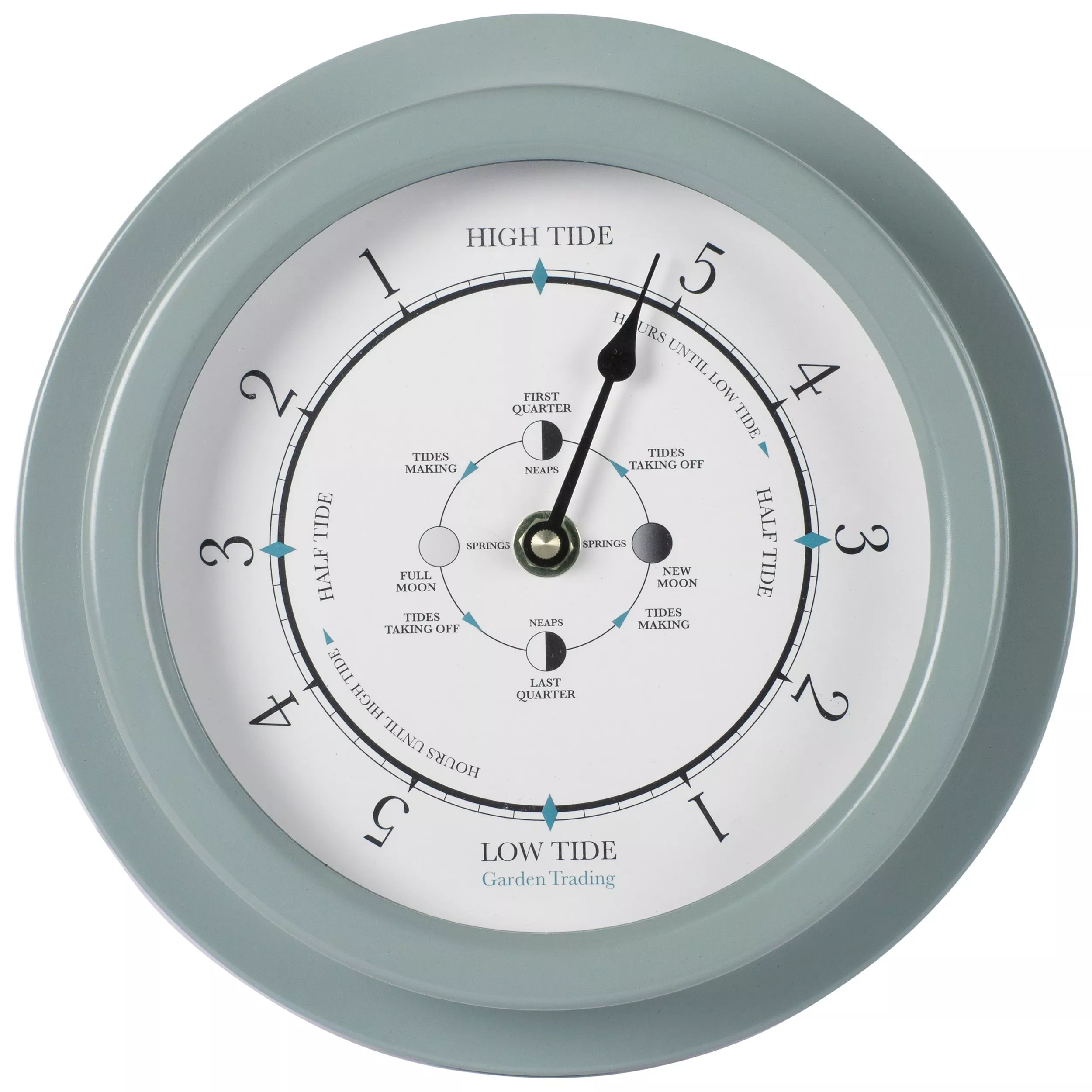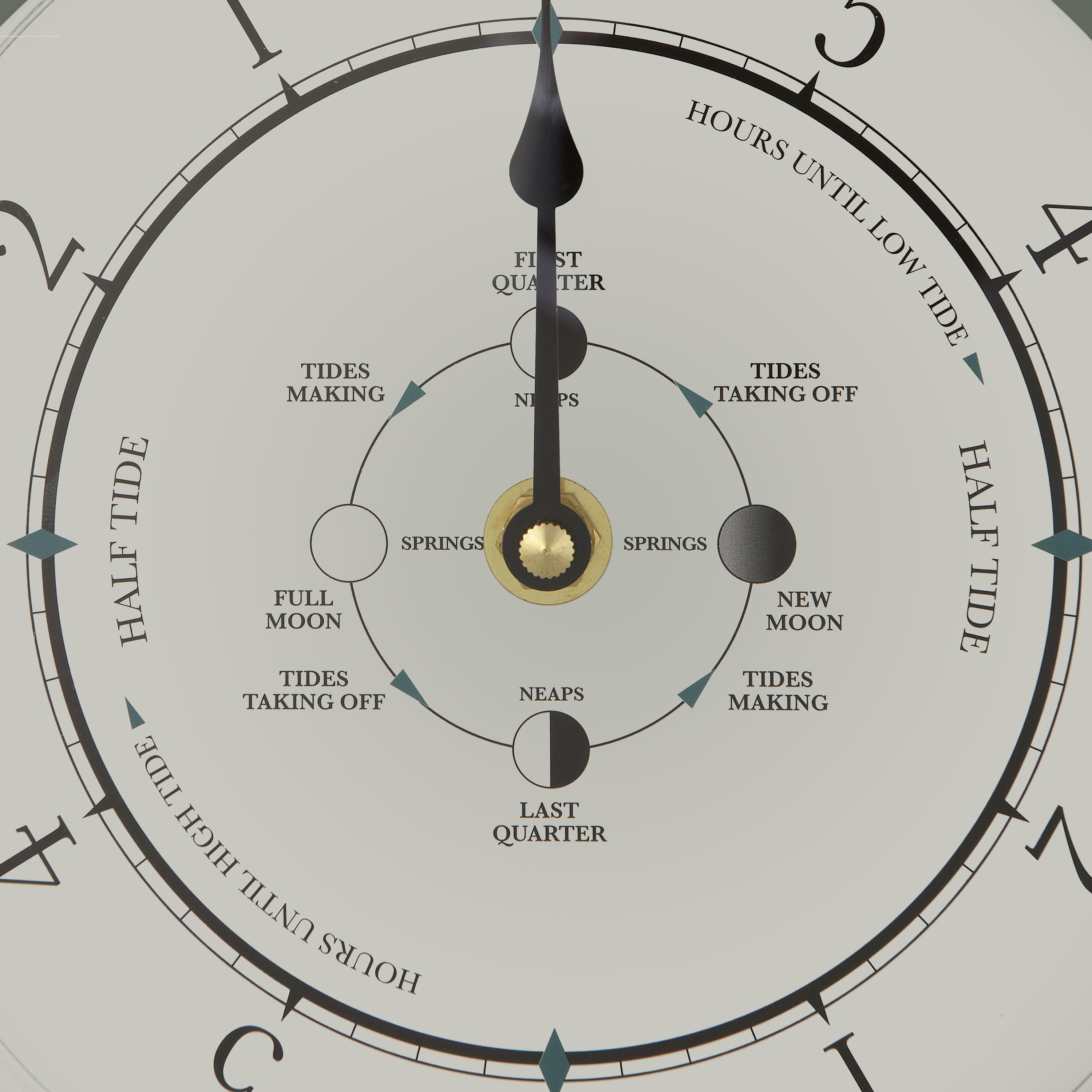 A simple and stylish tide clock designed to synchronise to the lunar cycle, indicating whether there's a high or low tide. With a simple to use hook, it can be used both inside and out. --para-- Simply move the hands to full tide when your desired area is at full tide and clock will do the rest.