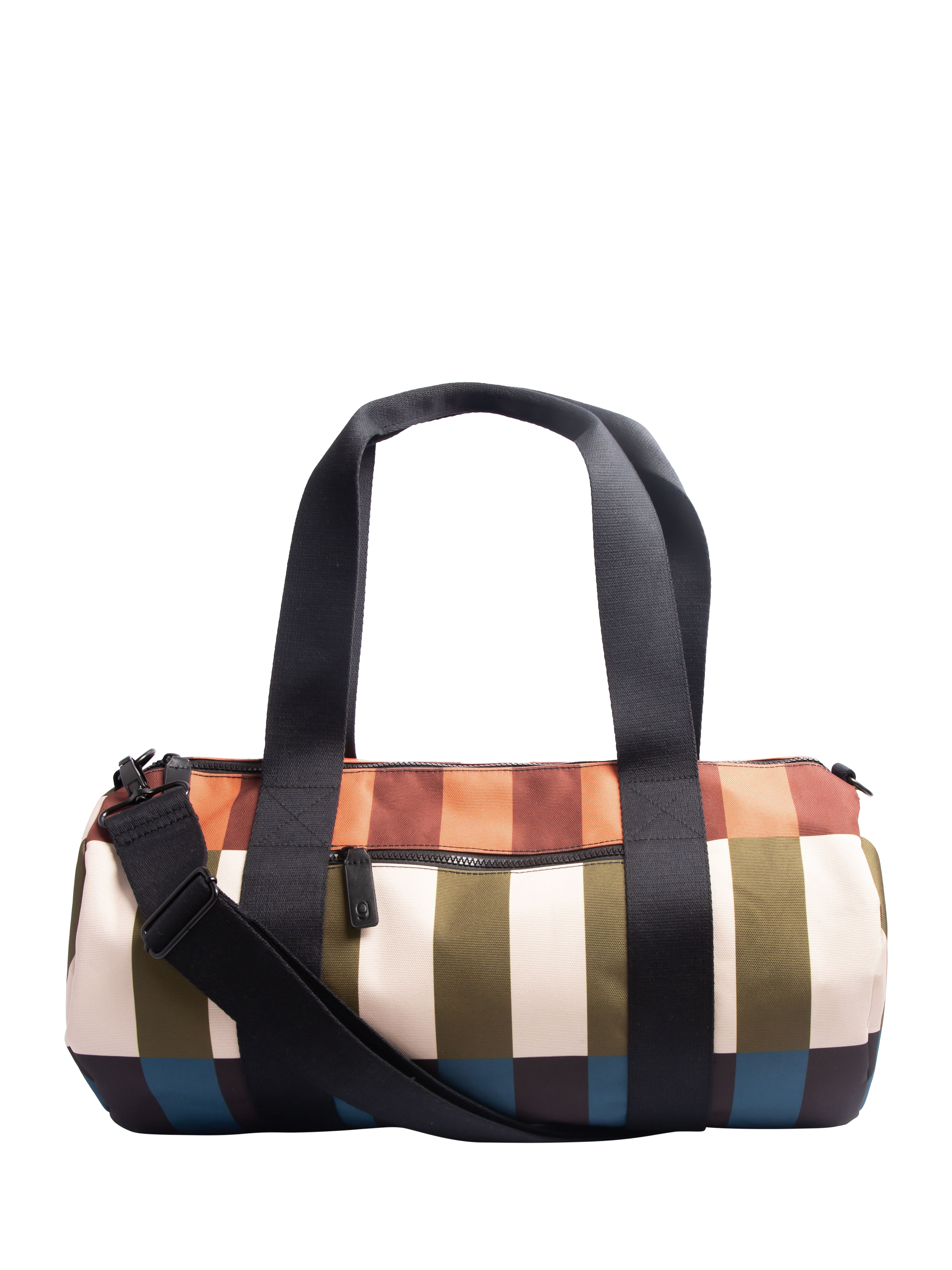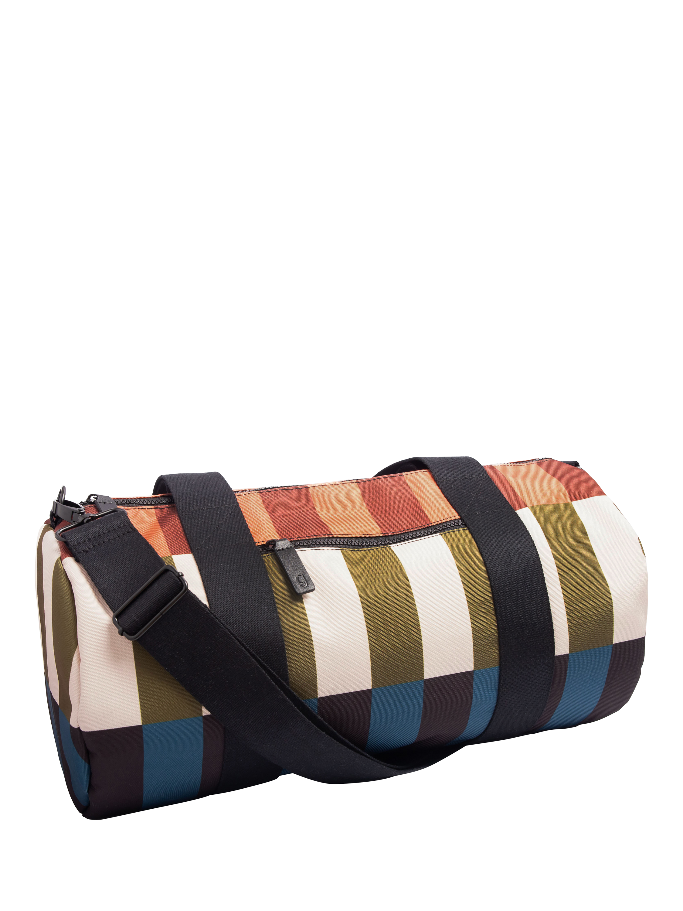 This bold, stand out, multi stripe canvas barrel gym bag is part of the new Gardner collection which is great for all your everyday adventures. It features a top handle, adjustable shoulder strap and easy access outside fully functional zipped pocket to keep all your essentials together in one compartment.