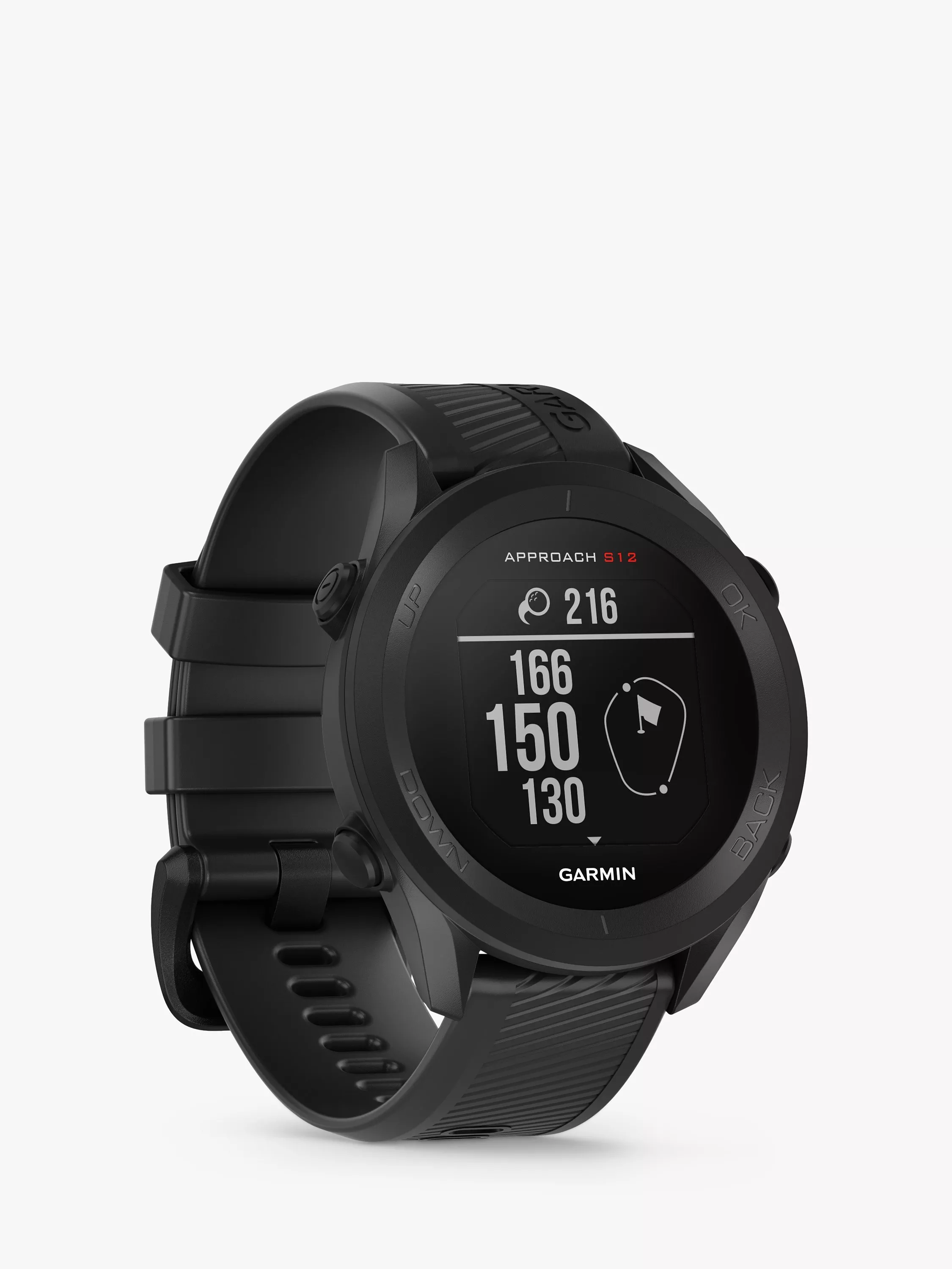 Garmin have got your game with Approach S12, a golf watch designed to turn on when you tee off. Get key yardages to the green, as well as to hazards and doglegs, on 42,000 preloaded courses worldwide. Keep score from the watch itself and upload directly to the Garmin Golf app*. Play longer with a battery life that holds up for up to 30 hours in GPS mode.
