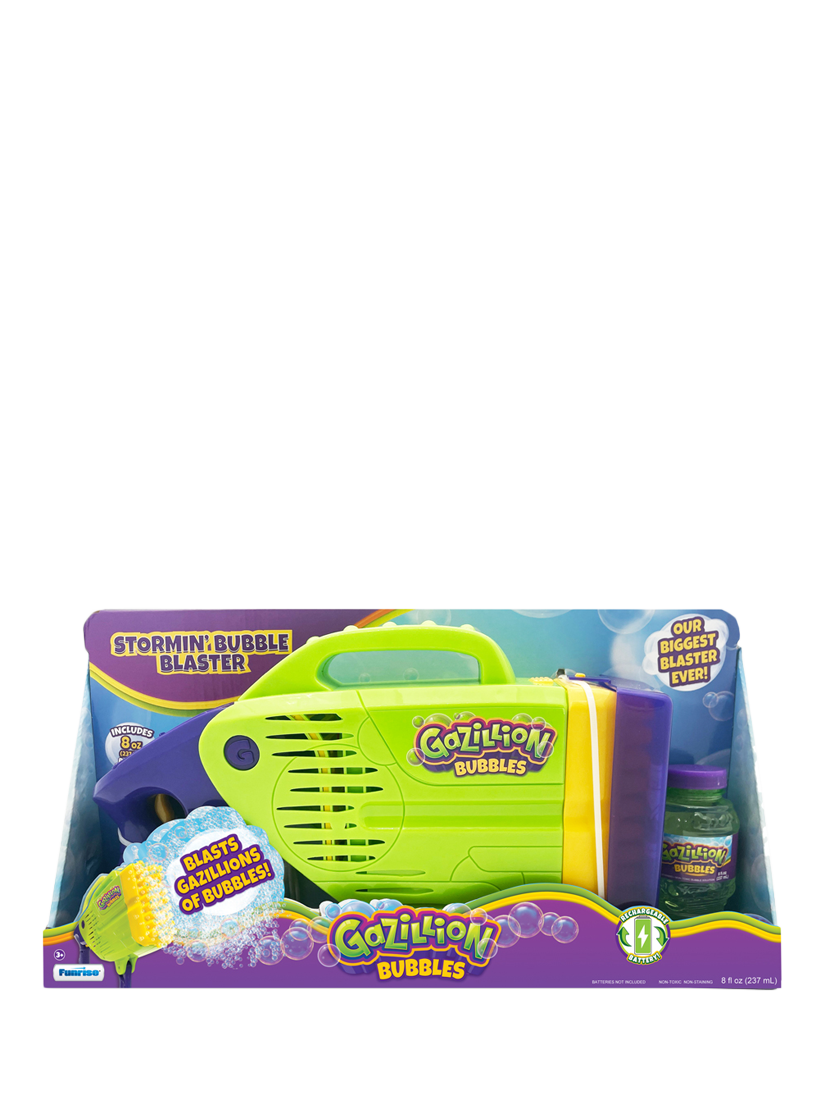 Get ready for a storm of bubbles! The Stormin Bubble Blaster is the biggest blaster ever from Gazillion Bubbles, and unleashes a flurry of big bubble fun.