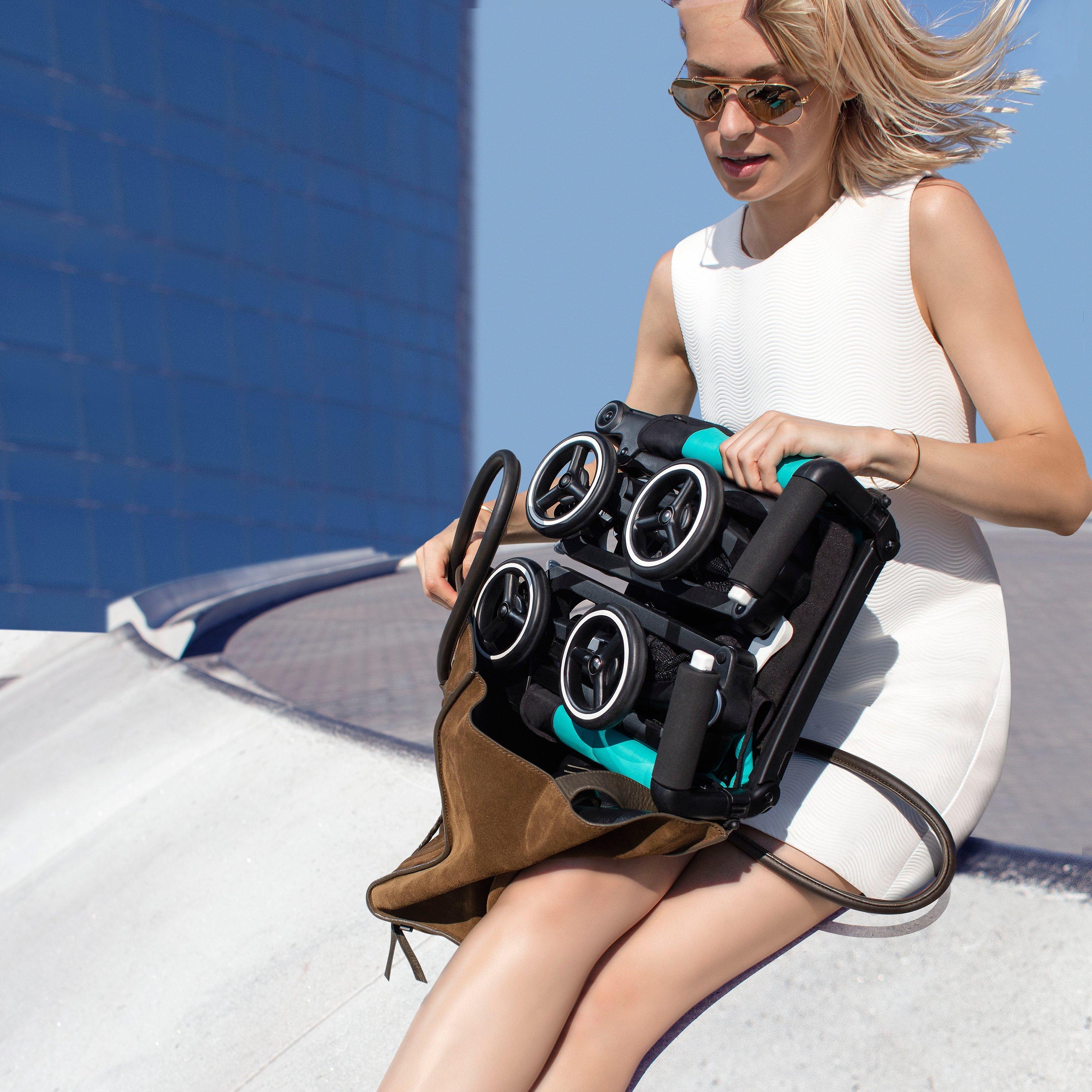In only two steps the buggy becomes a compact and feather-light handbag-shaped package, great for when you are on the move and practical and easy to stow away when you're not. It even fits into any plane or train overhead compartment perfect for parents travelling with their little one.