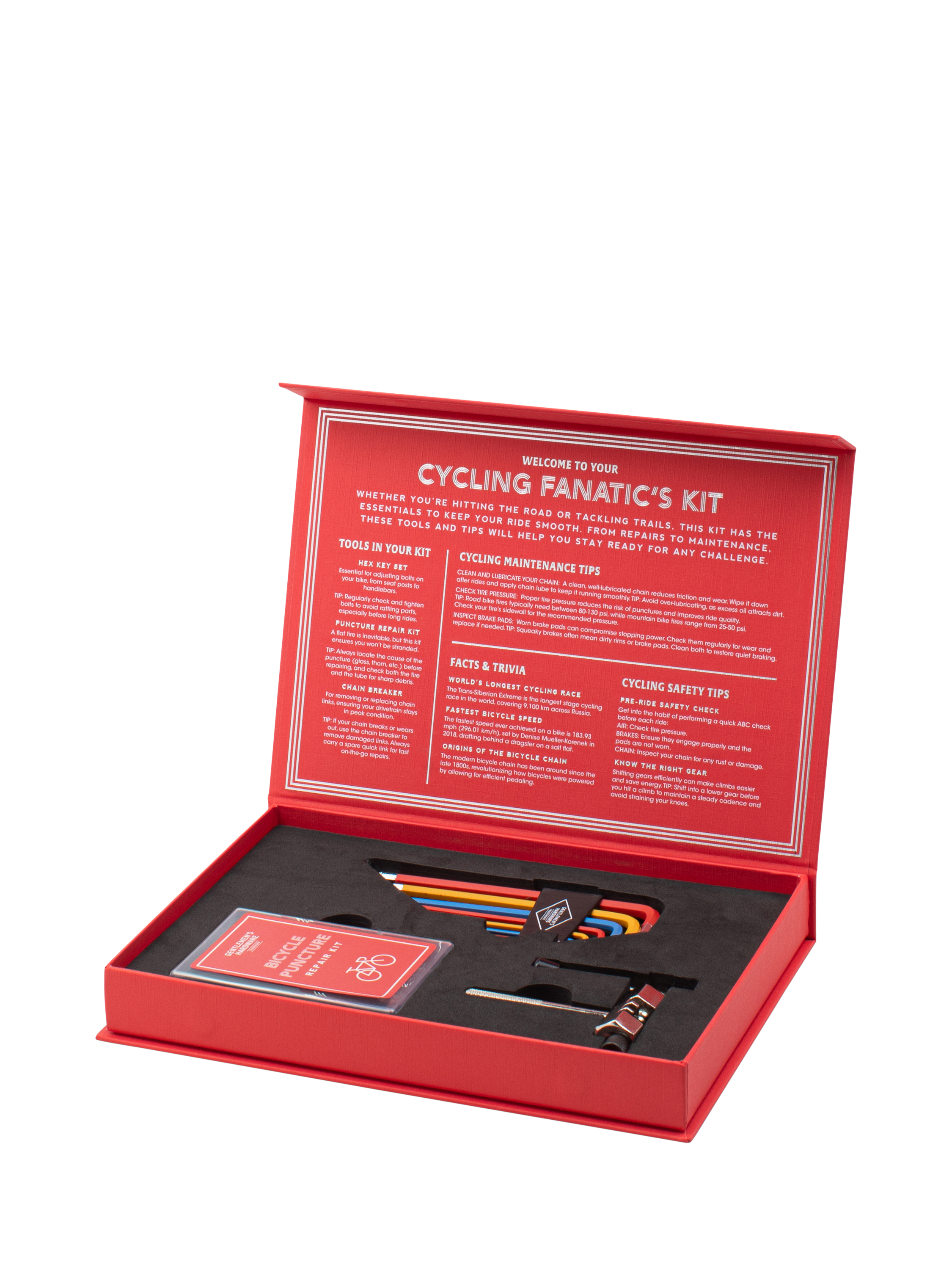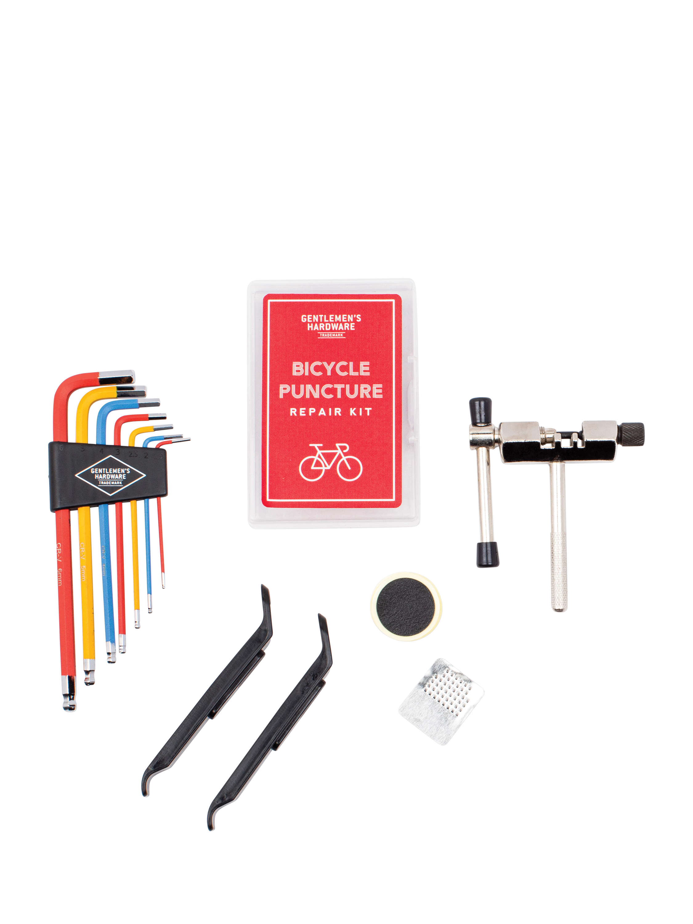 A collection of tools for the avid cyclist. Kit includes: 7-piece hex key set (1.5-6mm), puncture repair kit & chain breaker.