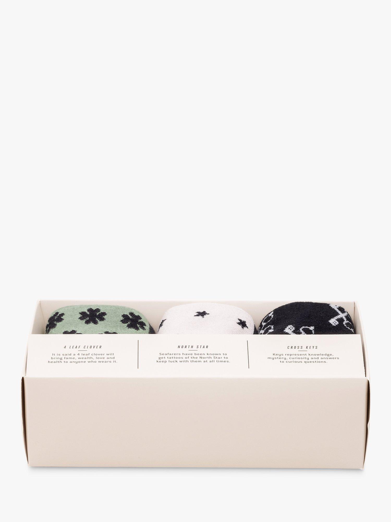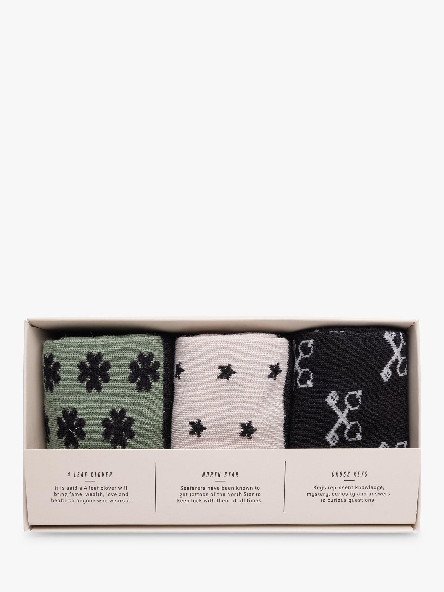 This set of three pairs of socks features a different lucky icon from around the world on each pair that we hope will bring you good fortune and success! Made from soft combed cotton.