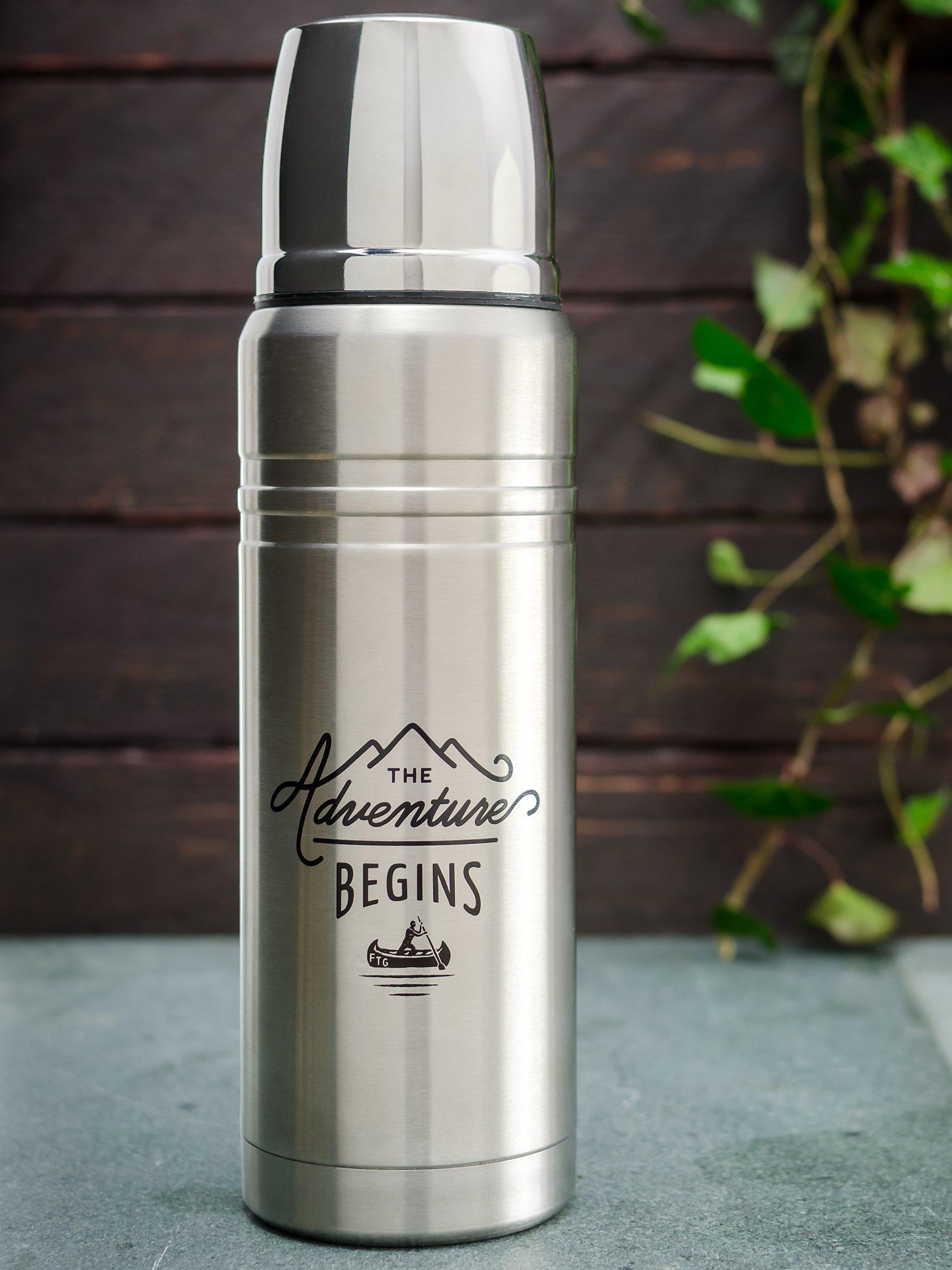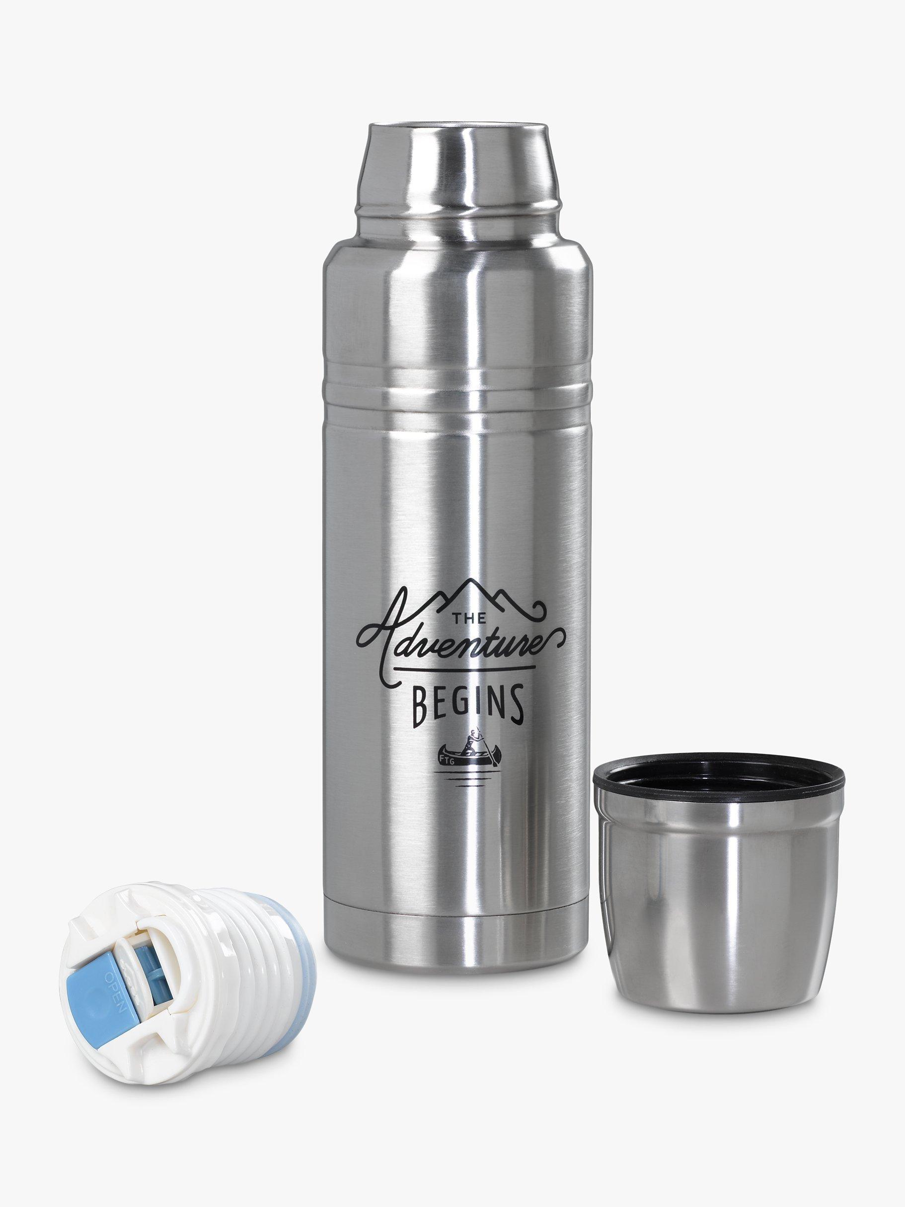 Perfect for keeping soups and broths warm in the wild outdoors, this flask features a stainless steel body with a plastic screw-top stopper.