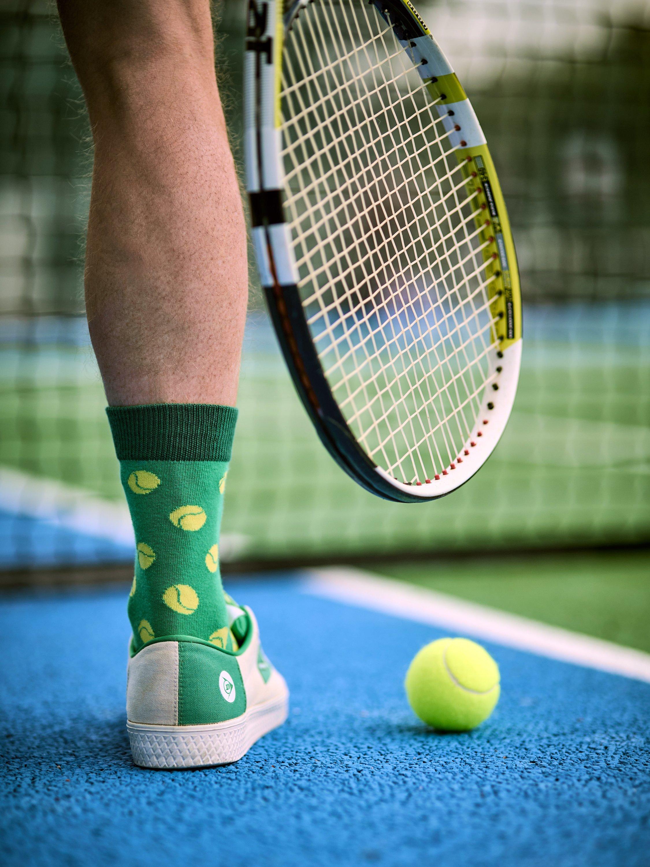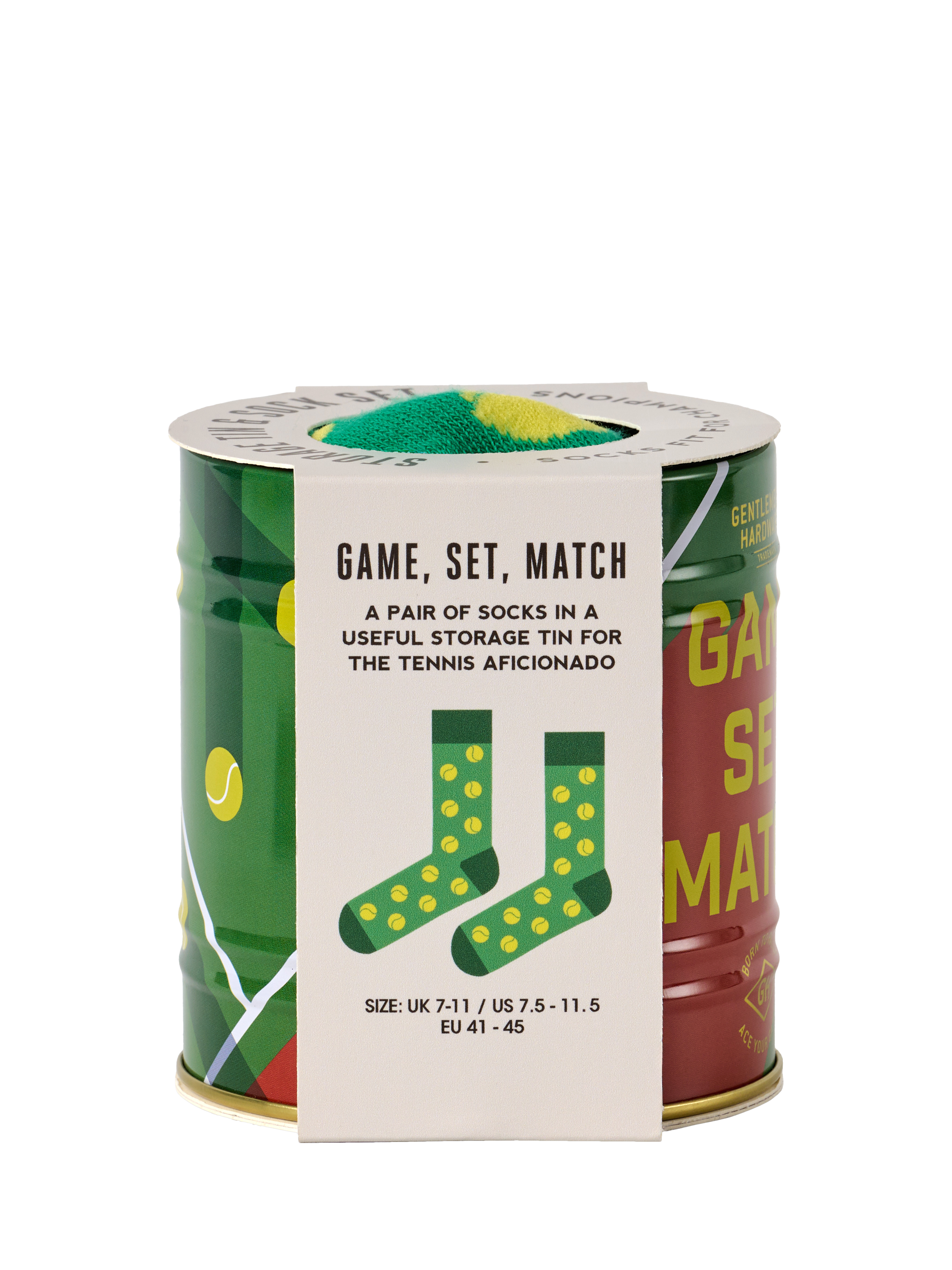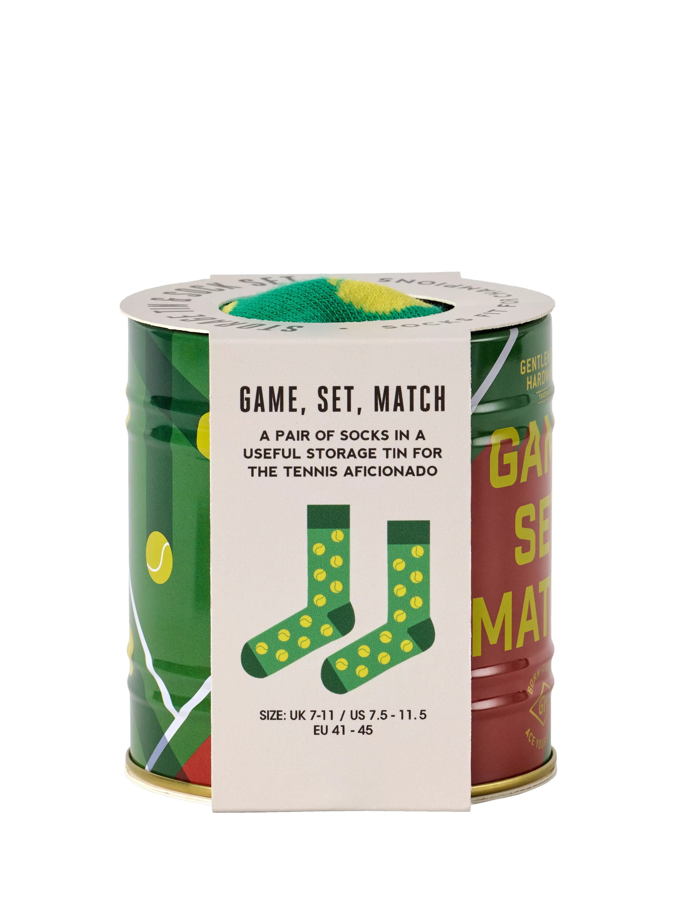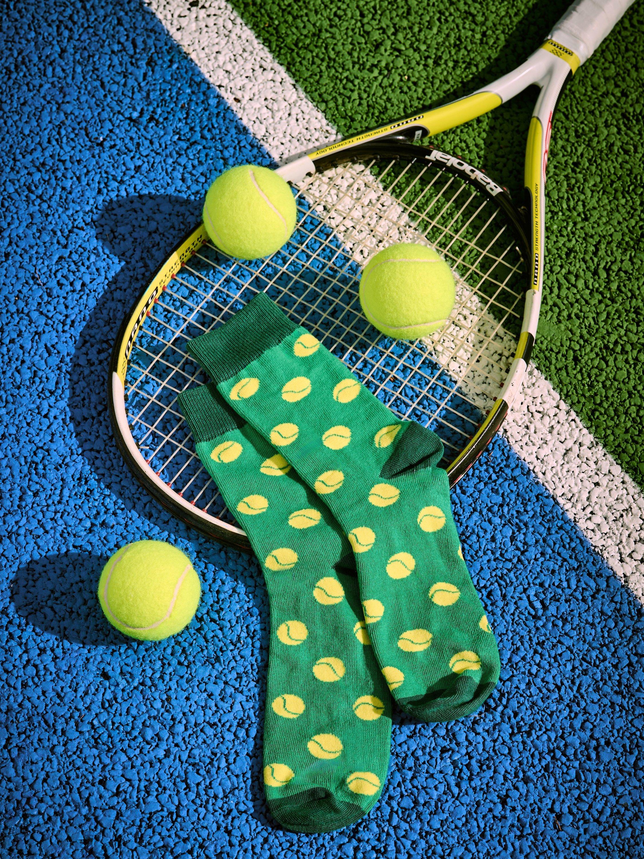 Serve up your style with this pair of tennis-themed socks, neatly tucked inside a handy storage tin. A perfect gift for the tennis lover.