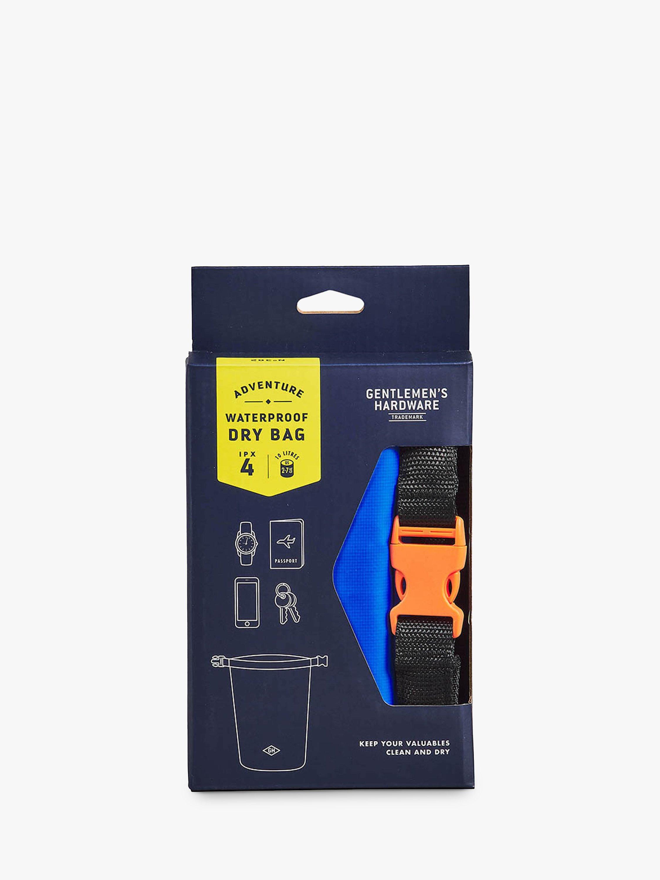 Keep your valuables and belongings clean and dry with this lightweight and durable Waterproof Dry Bag from Gentlemen's Hardware. Blue waterproof dry bag with roll top closure and clip fastening.