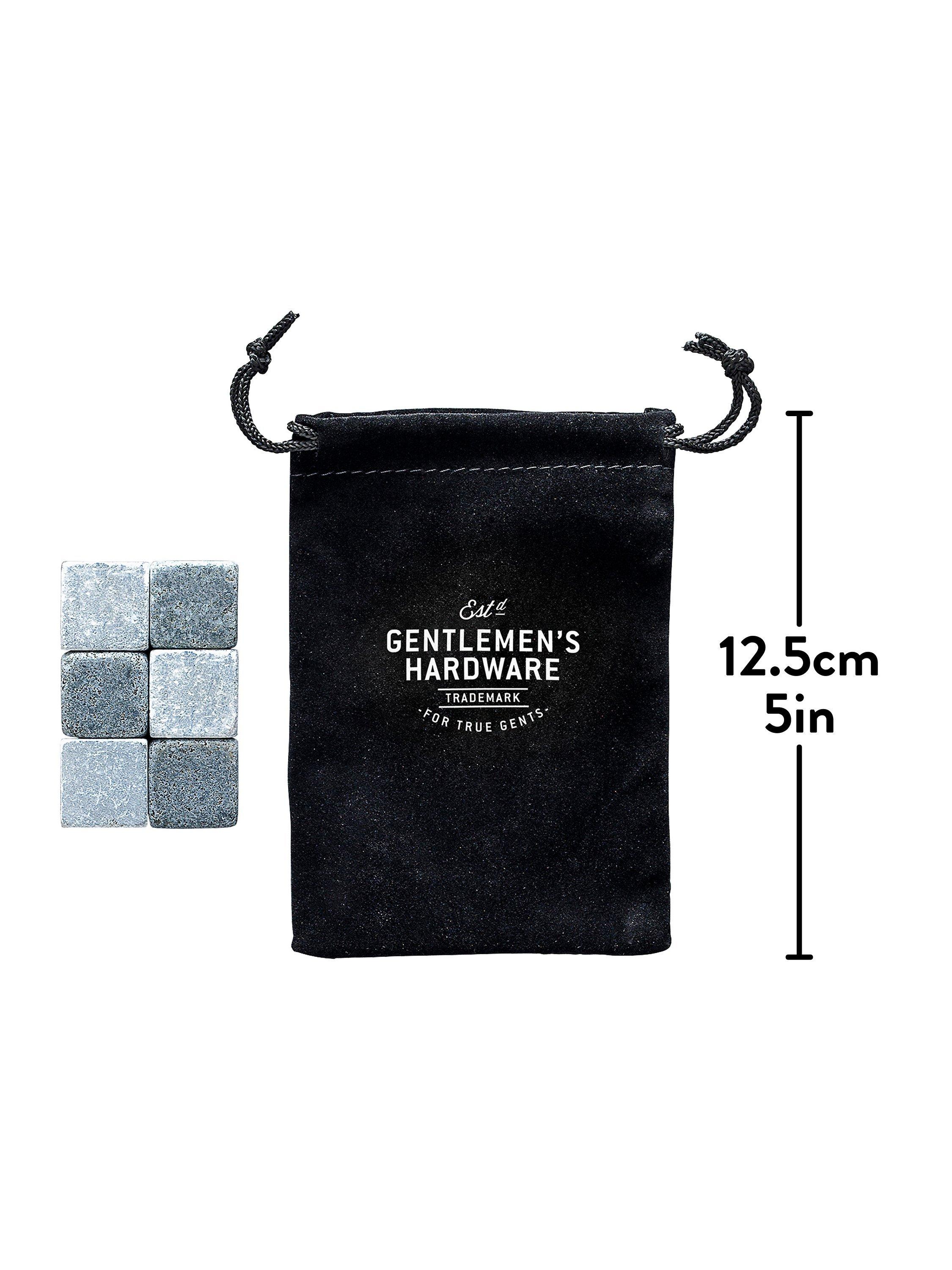 Set of 6 whisky stones made from granite and soapstone, ideal for keeping beverages cool. Simply pop in the freezer for four hours prior to use. Comes complete with a velvet storage pouch with Gentlemen's Hardware logo