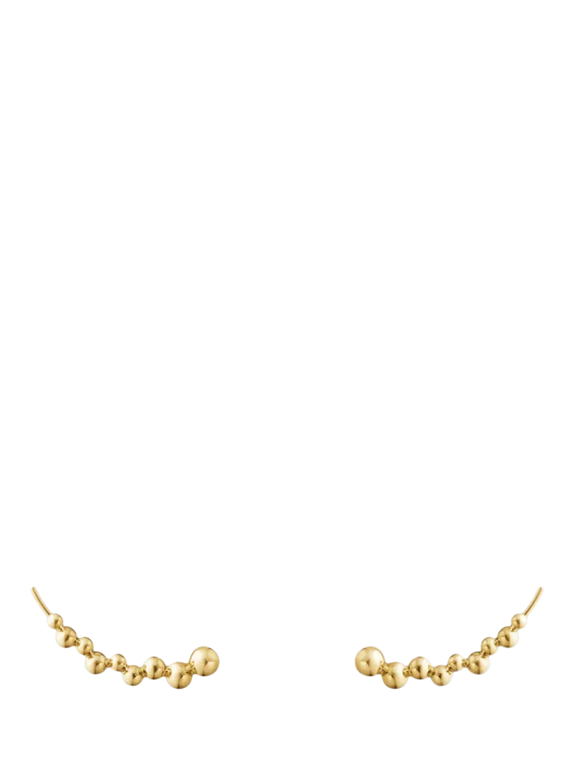 Whether dressing up a casual day outfit or adding understated glamour to an evening look, these delicate, gold earrings can add a subtle elegance to any ensemble. Formed by an elegant string of grape-shaped spheres, their design reinterprets the Art Nouveau legacy of Georg Jensen in a modern way, drawing inspiration from his earliest holloware creations and the fruit motifs that adorned them, while providing a contemporary piece of jewellery design.