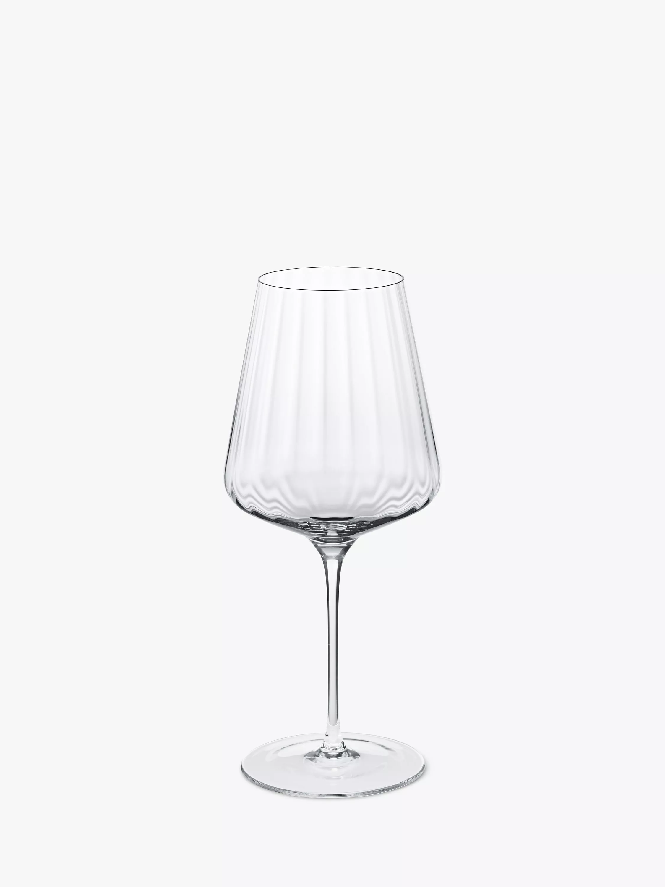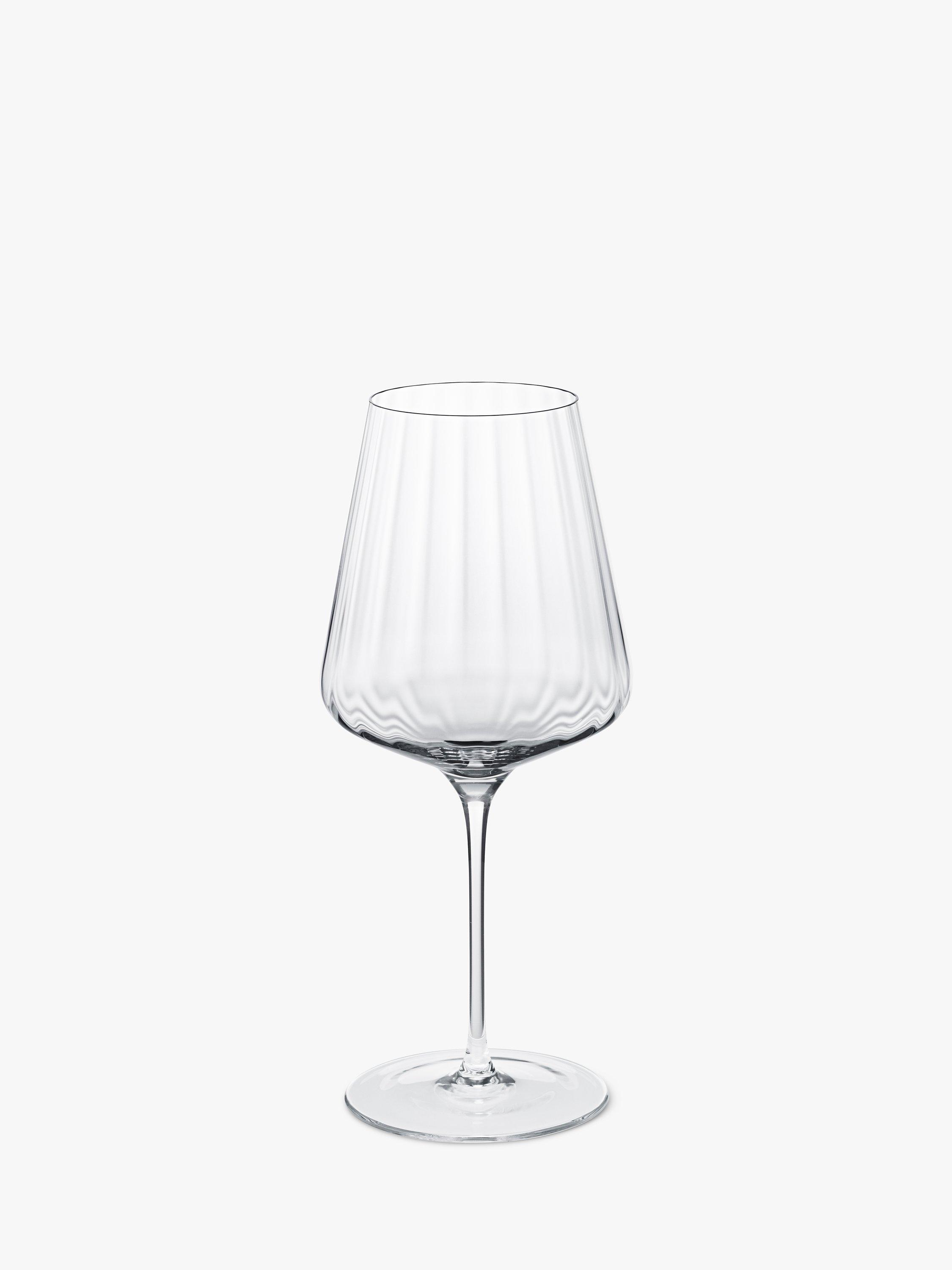 The signature grooved detail that features on many Georg Jensen Art Deco pieces is used on these six lead-free crystal red wine glasses. It's a detail that catches the eye with the added functional benefit of adding grip so they can be held firmly.
