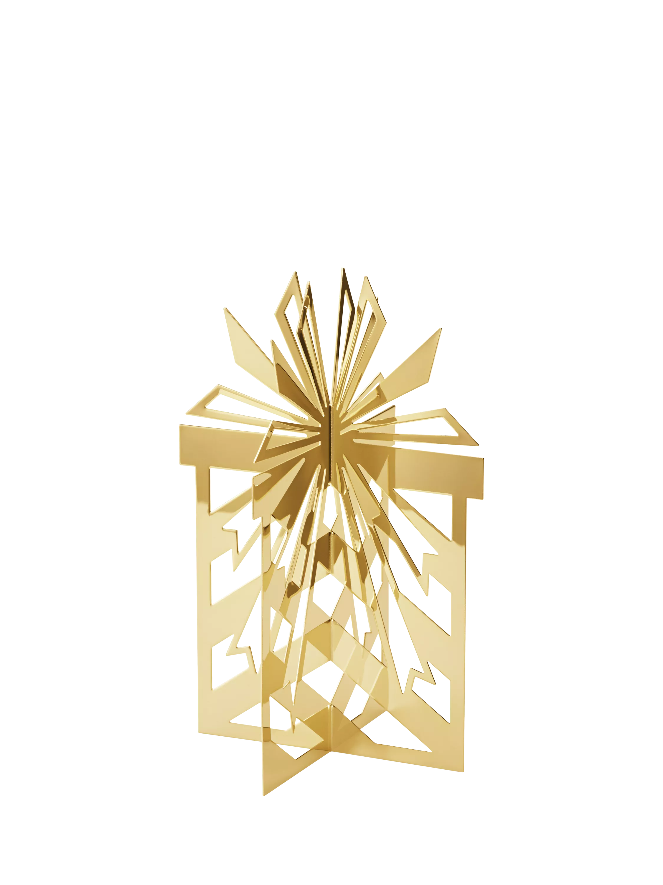Crafted in a gleaming 18-carat gold-plated finish, this elegant ornament beautifully captures the charm of a carefully wrapped Christmas present, complete with a festive bow on top.