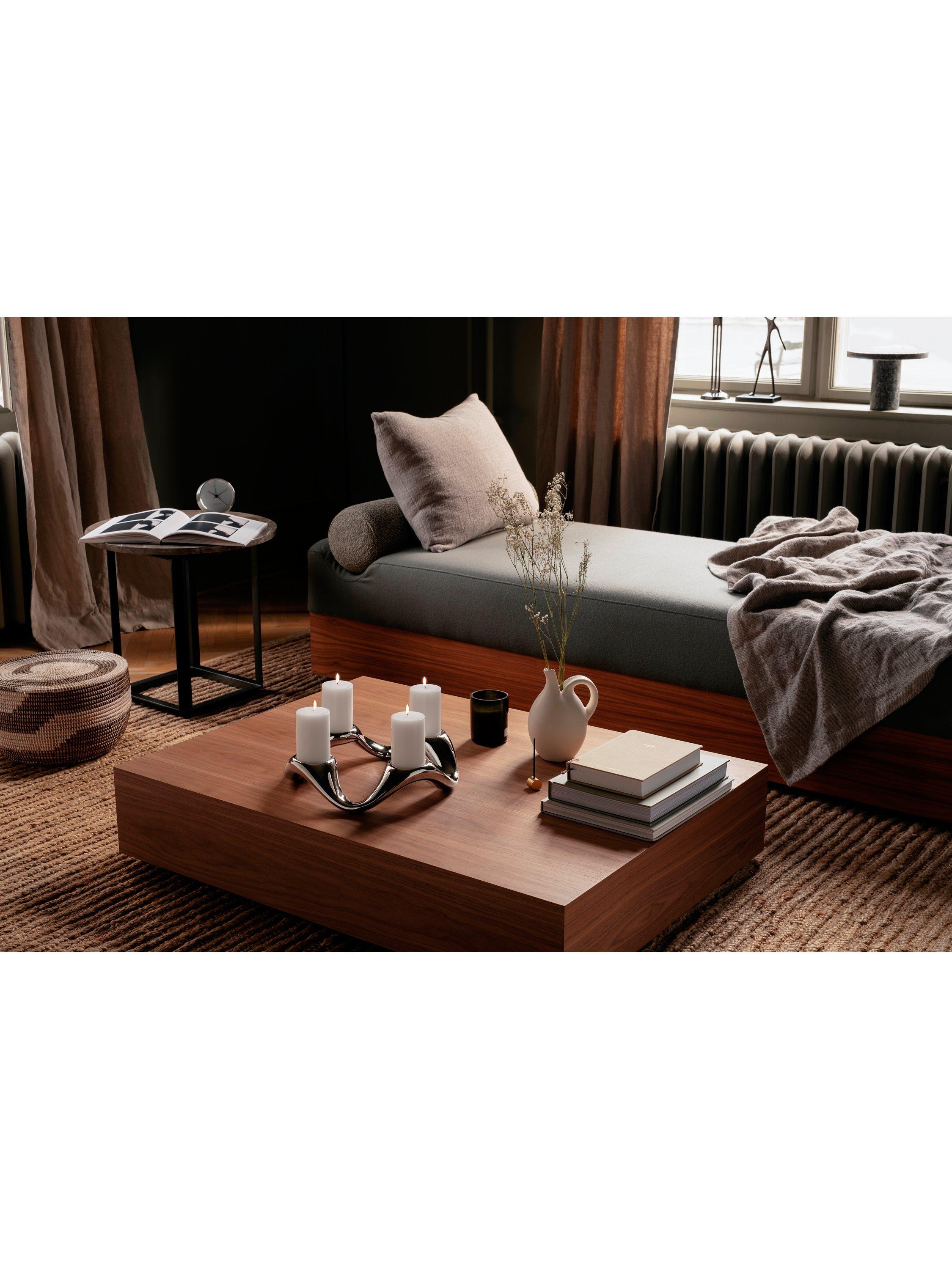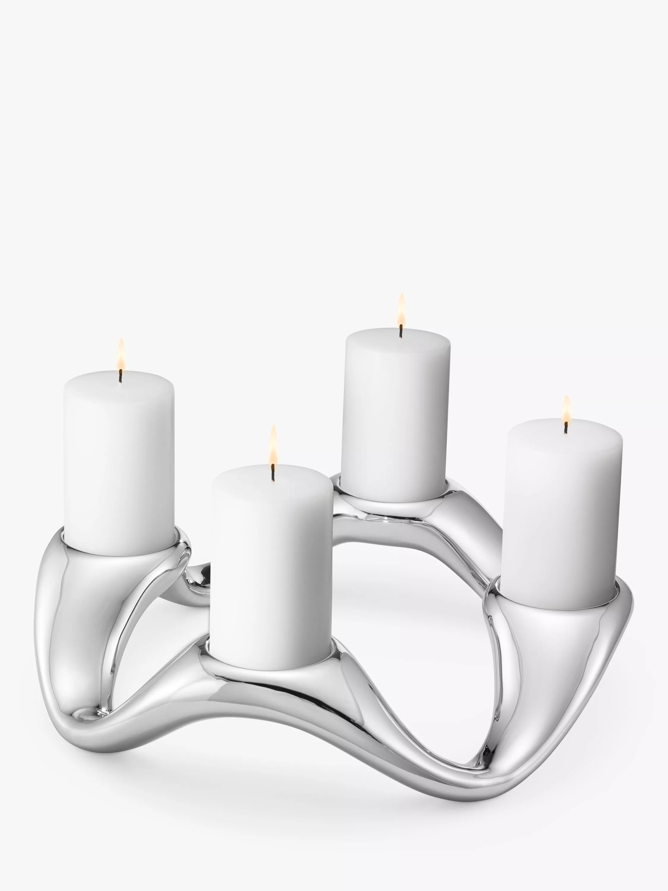 Giving the illusion of movement, this giftable candlestick is an original design from Georg Jensen's Cobra collection. A fluid style, the candle holder is made of stainless steel, making a weighty, well-balanced centrepiece for the table. It holds four pillar candles up to 6cm in diameter (not included).