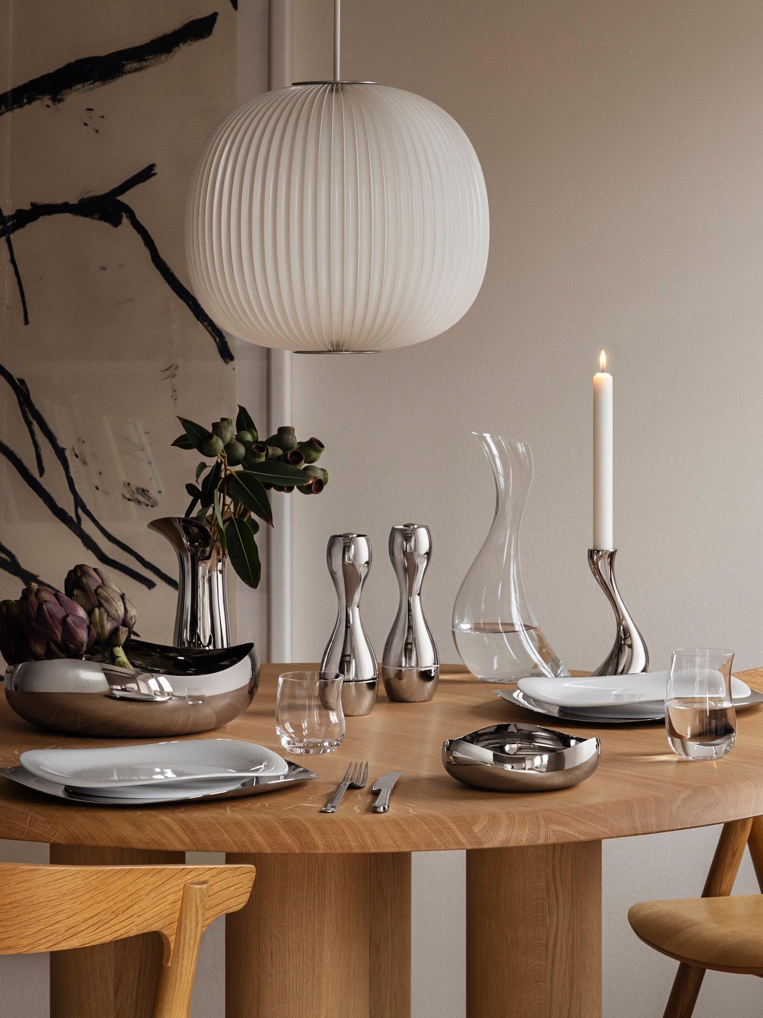 A salt and pepper grinder set from Georg Jensen with curvaceous bodies and a reflective, mirror-polished finish that will stand out on your dining table.