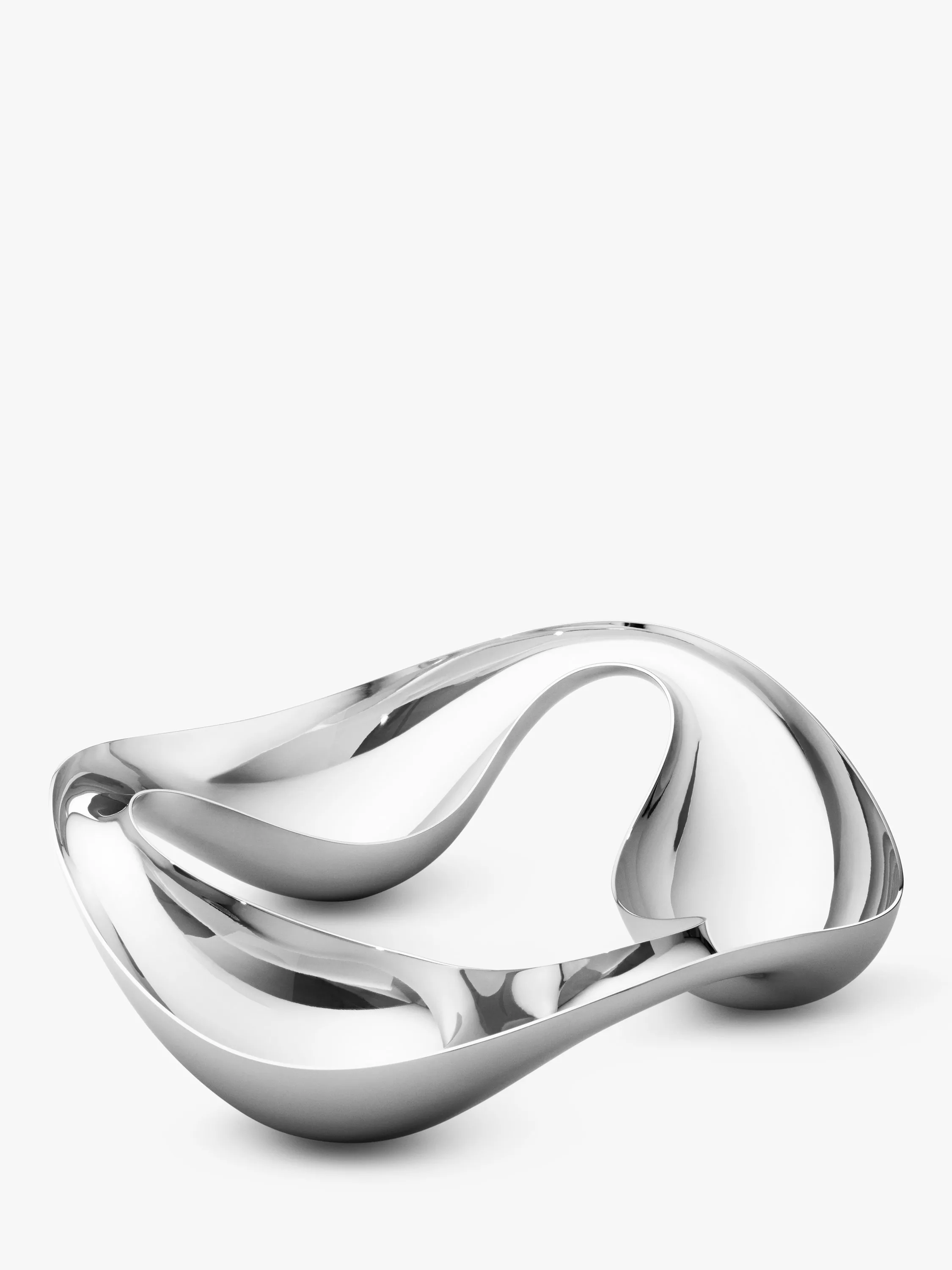 With a flowing, organic shape this snack bowl from Georg Jensen has three troughs for serving nuts, dips or sweet treats. Made from stainless steel it has a reflective mirror-polished finish which adds to its dramatic style.