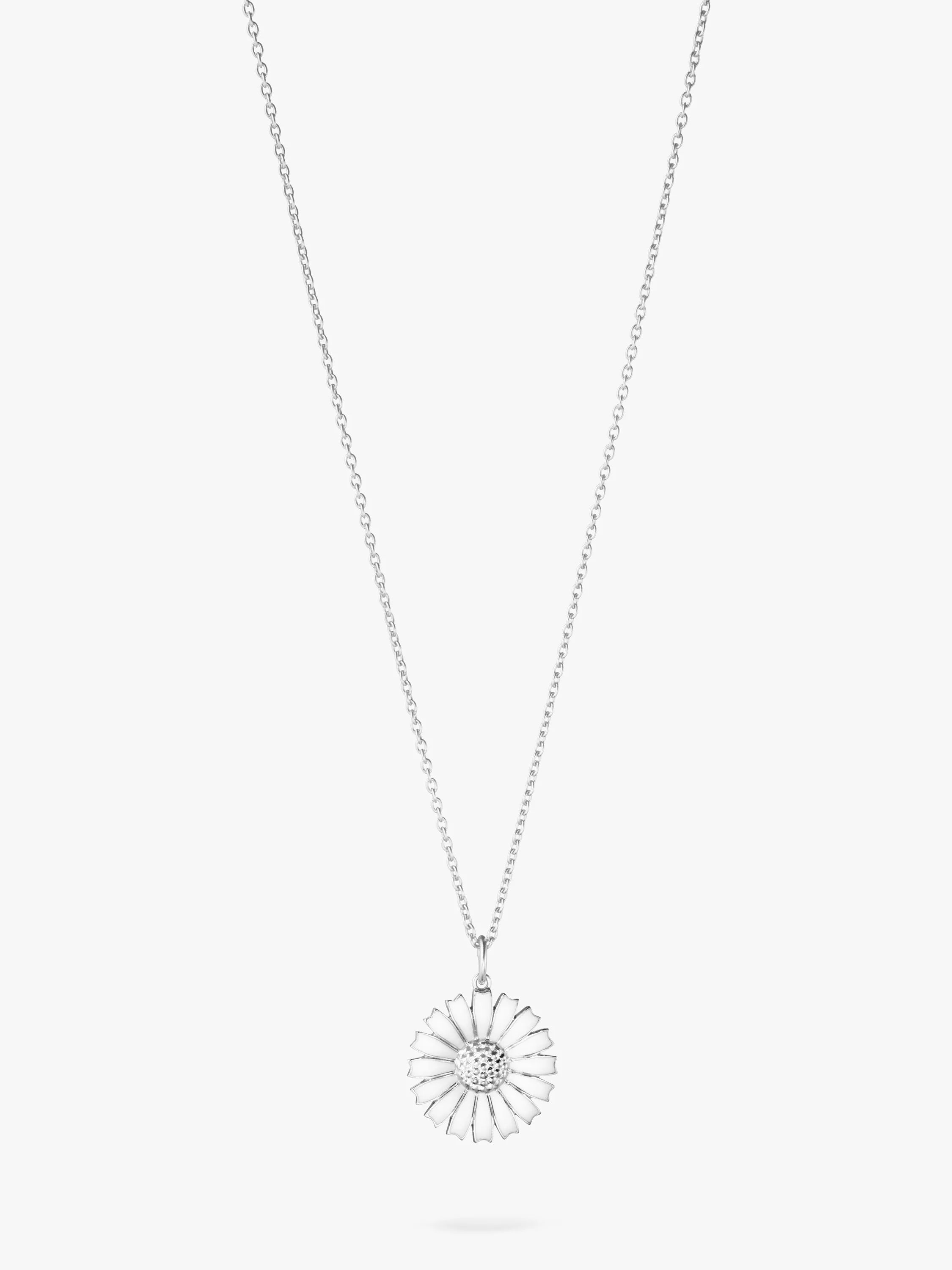 A blooming daisy hangs on a sterling silver chain giving life to this elegant pendant. Hand-plated in enamel, the piece lends itself to any occasion and ensemble, be it formal or casual. A part of Georg Jensen's celebrated Daisy collection, the pendant features the iconic floral motif inspired by a 1940s brooch donated to HM Queen Margrethe II of Denmark.