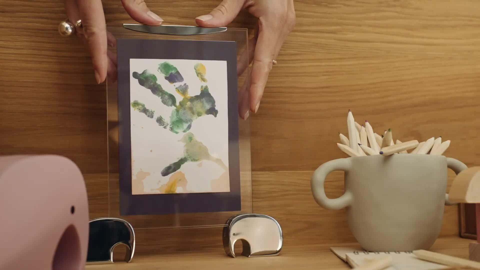 Both the elephants and the stainless steel holder can easily be moved about to allow the photo frame to be positioned both vertically and horizontally.