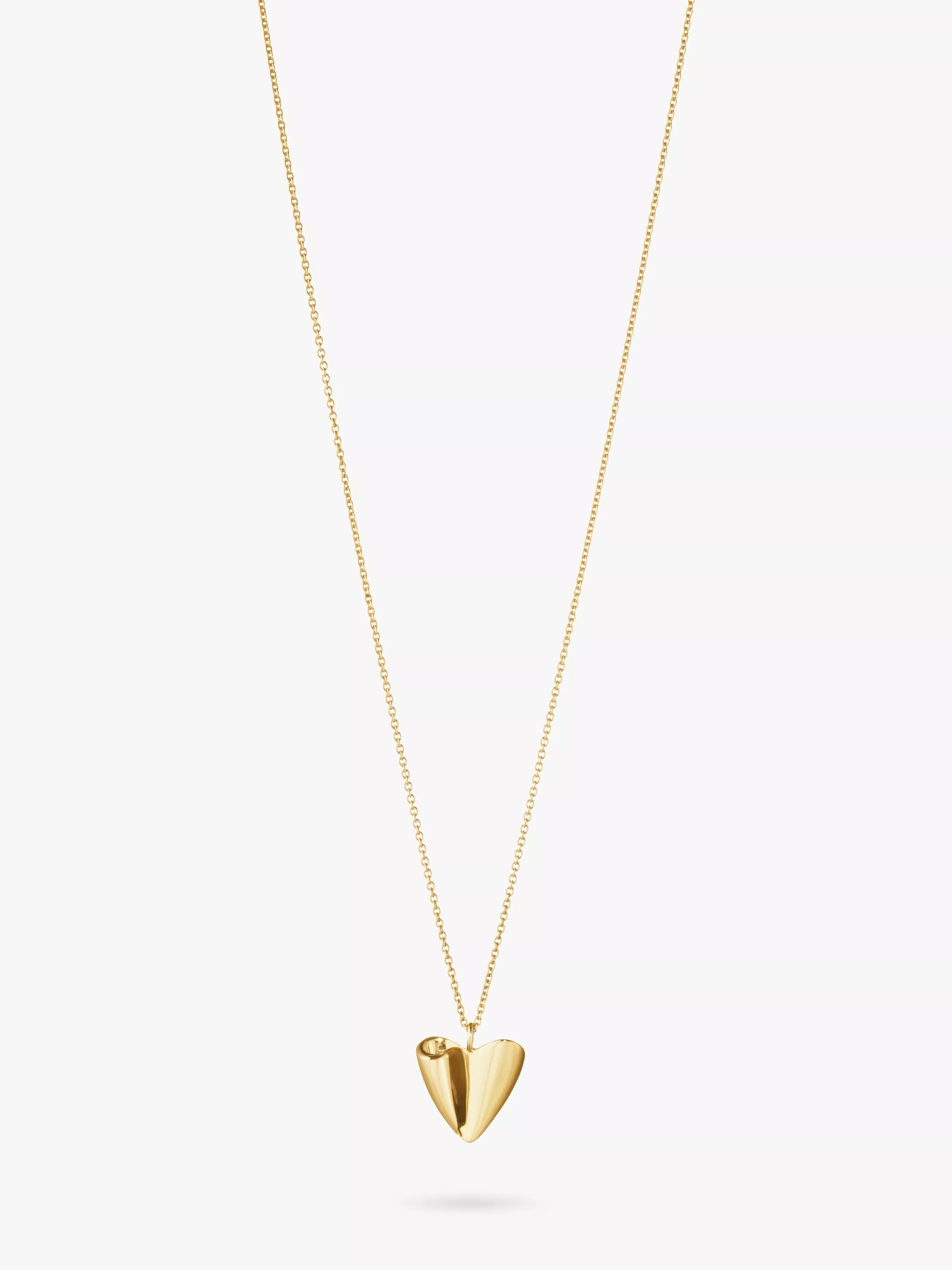 A sheet of metal is folded on both ends to give life to this stunning heart-shaped pendant. Inspired by the soft and organic shapes of mid-century silver hollowware designs, the pendant necklace is deeply rooted in Georg Jensen's history while providing a contemporary piece of jewellery design.