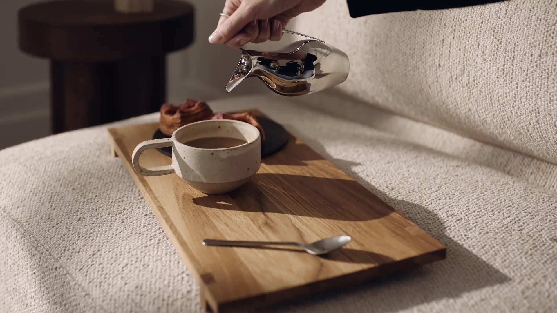 Crafted in mirror-polished stainless steel, it retains the sculptural and sleek forms that define Koppel's mid-century design icon.