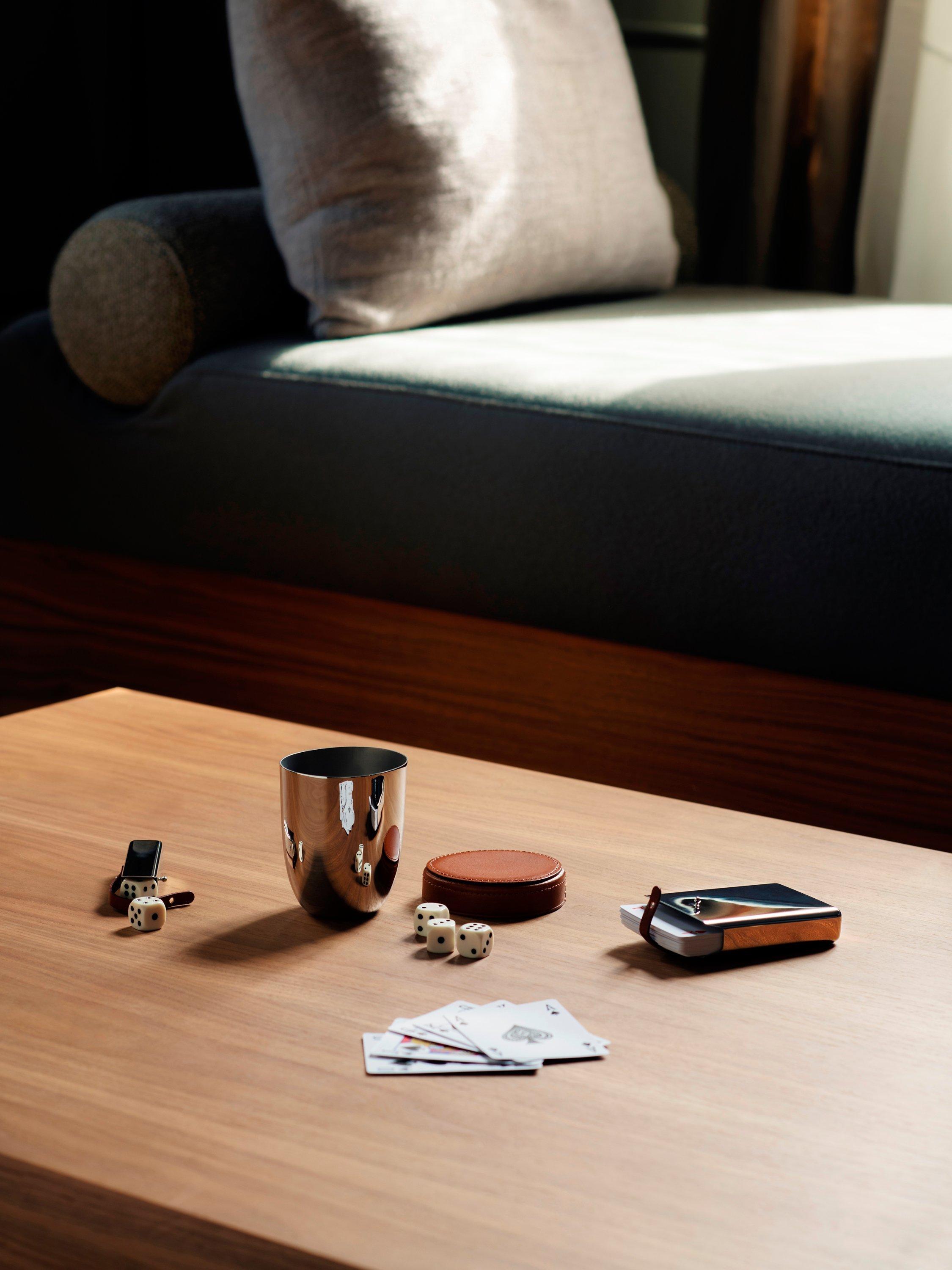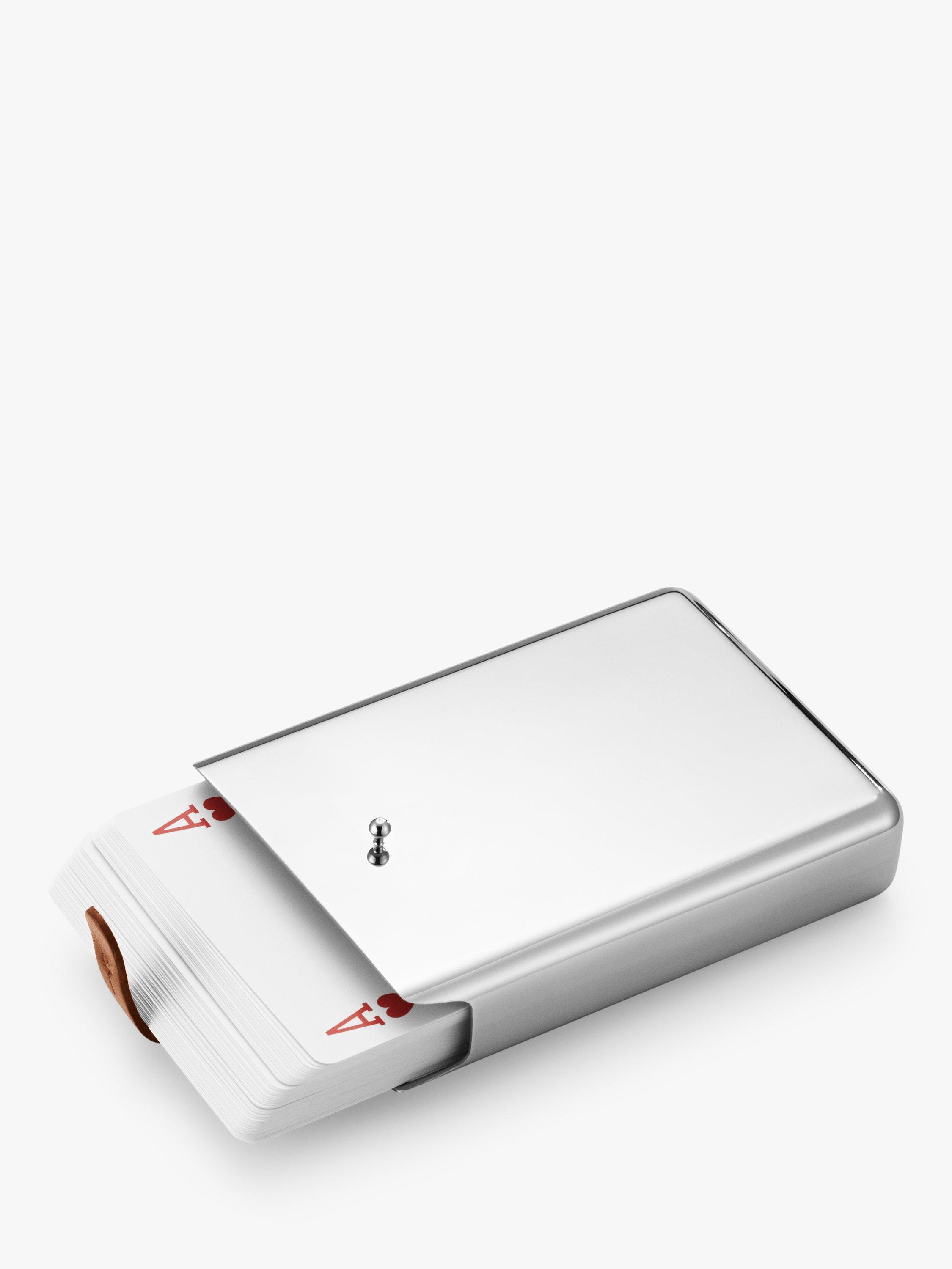 A gift for card players, this card deck and mirror-polished stainless steel holder is part of Aurélien Barbry's ergonomic Sky homeware collection for Georg Jensen, combining form and function with clean lines typical of Scandinavian design.