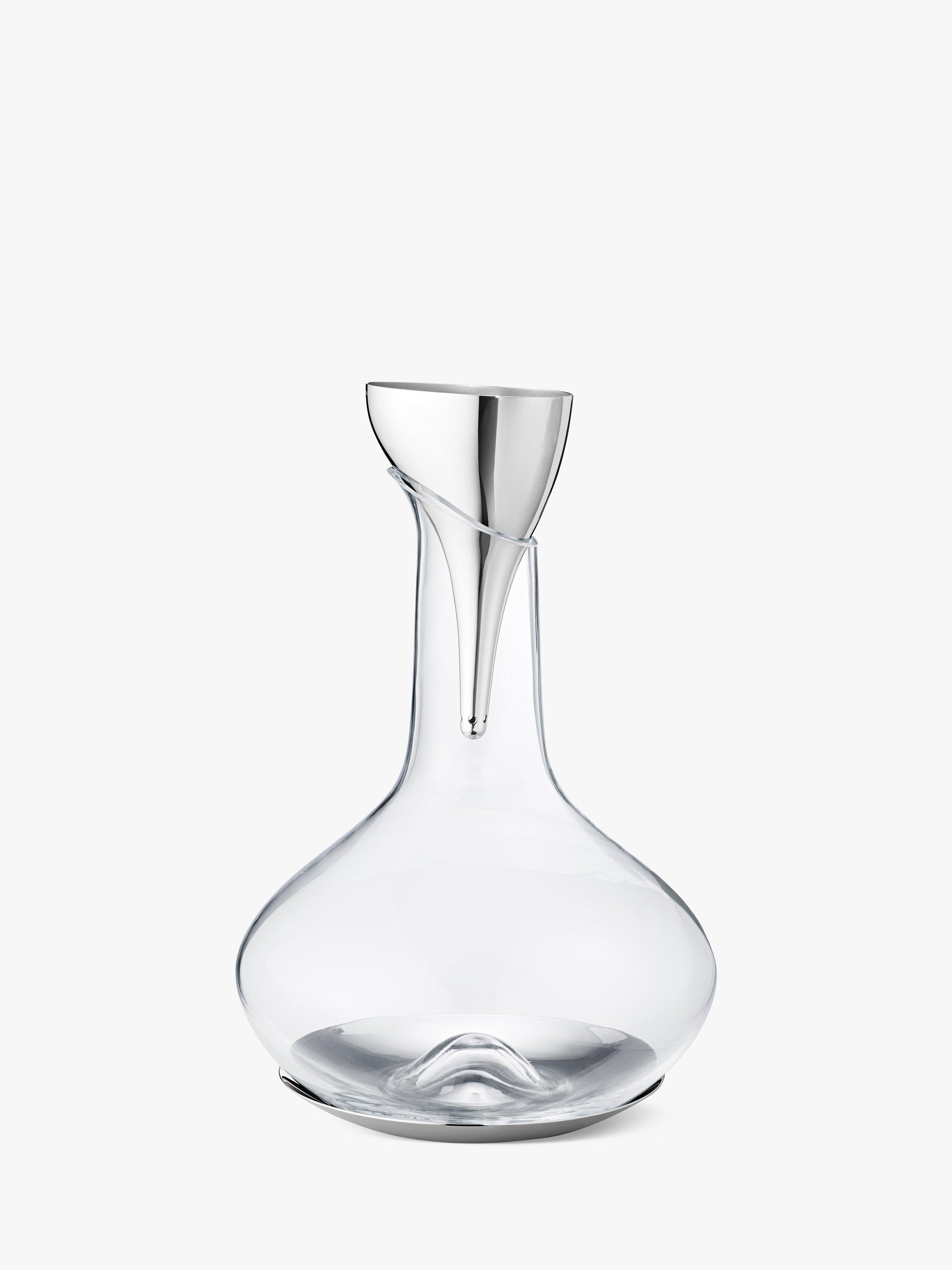 A stylish asymmetric Sky aerating funnel from Georg Jensen for transferring wine from bottle to decanter, adding an extra flourish to the whole ceremony. Made of mirror-polished stainless steel, it comes with a special detachable filter to remove sediment and improve the taste of your wine. It makes the perfect accompaniment to the Sky Decanter.
