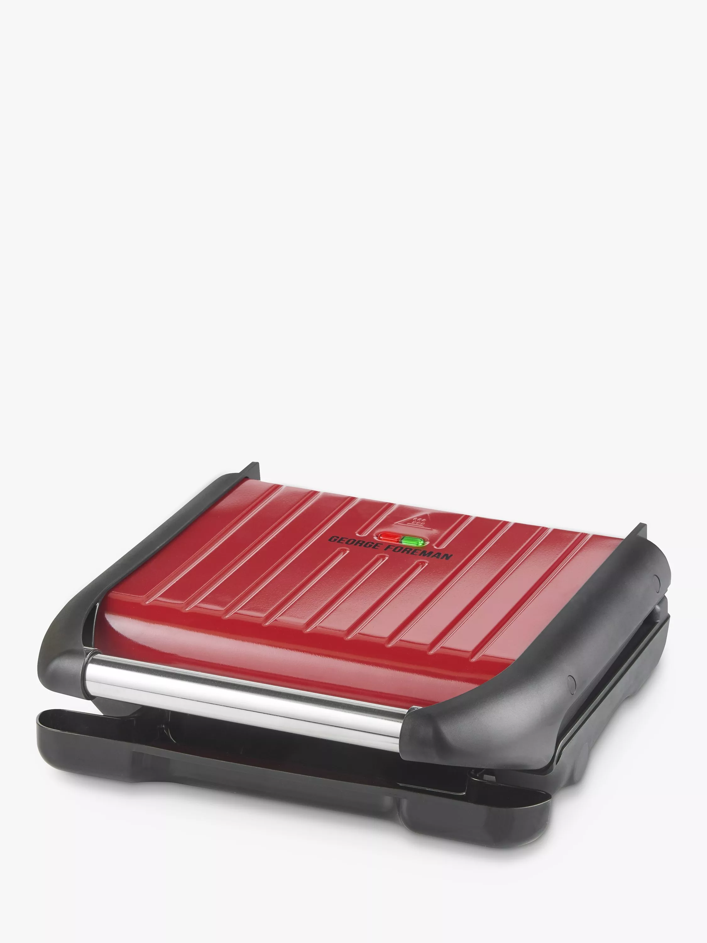 Cooking up to up to 5 portions, this George Foreman Worktop Grill features an adjustable rear foot for flat or angled cooking (flat for sandwiches and paninis, angled for meat) as well as a perfect fit drip tray.