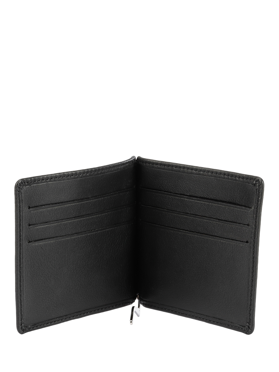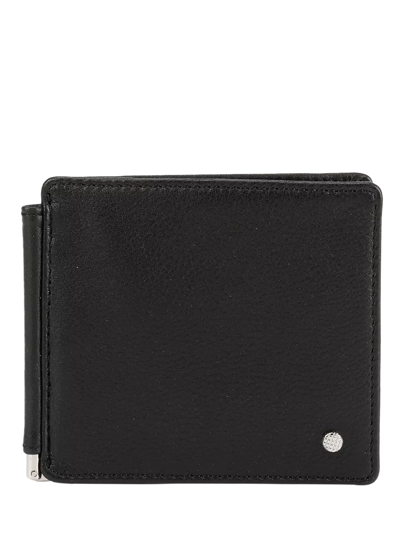 A men's wallet with a minimalist aesthetic and compact size. Crafted from tumbled leather, this accessory features an internal metal banknote clip and card slots.