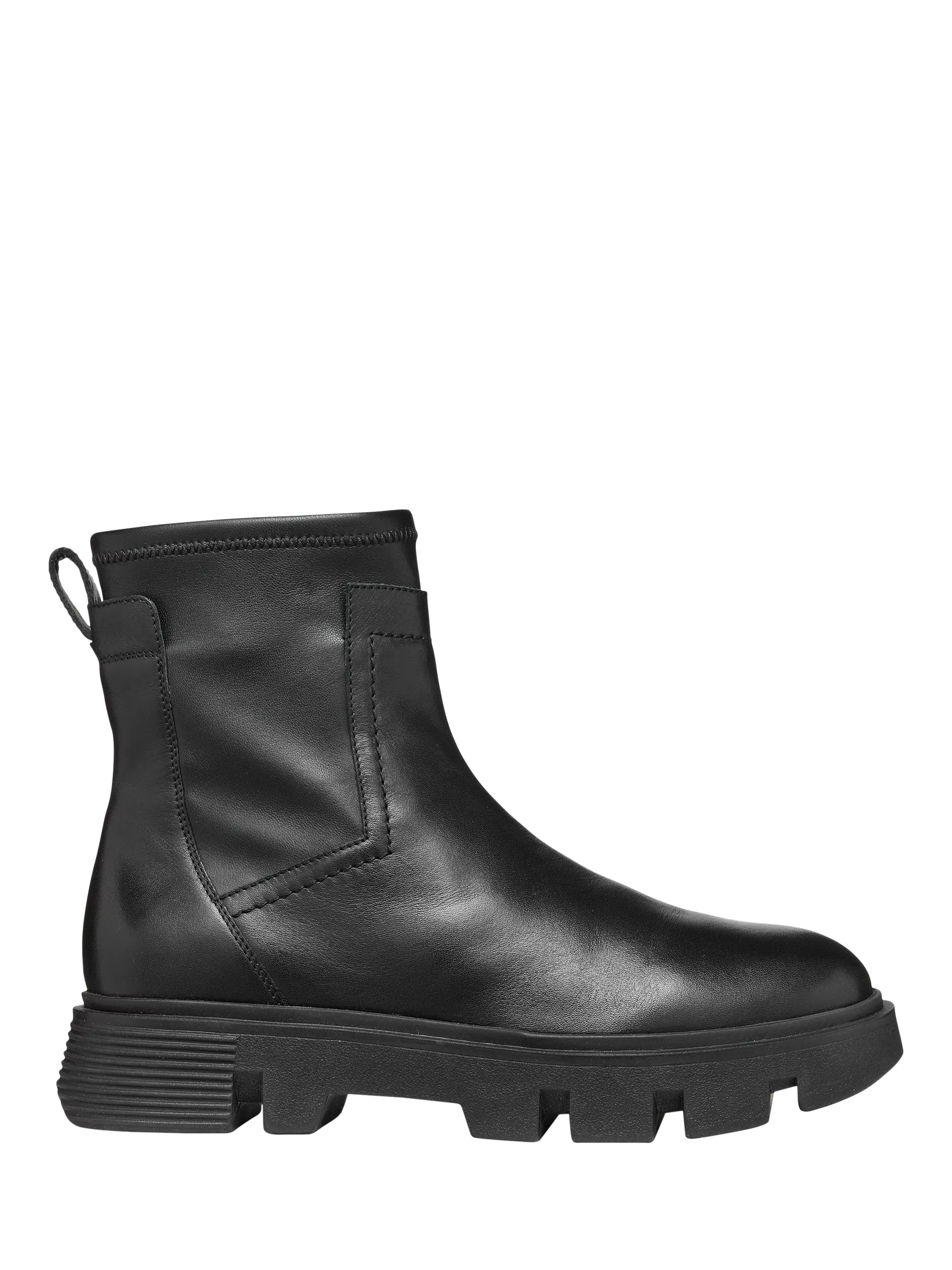 Vilde is a bold-looking ankle boot for women with a contemporary aesthetic and a comfortable breathable design. Crafted from leather and a stretch-effect material, it rests on a chunky outsole and will instantly energise city dressing.