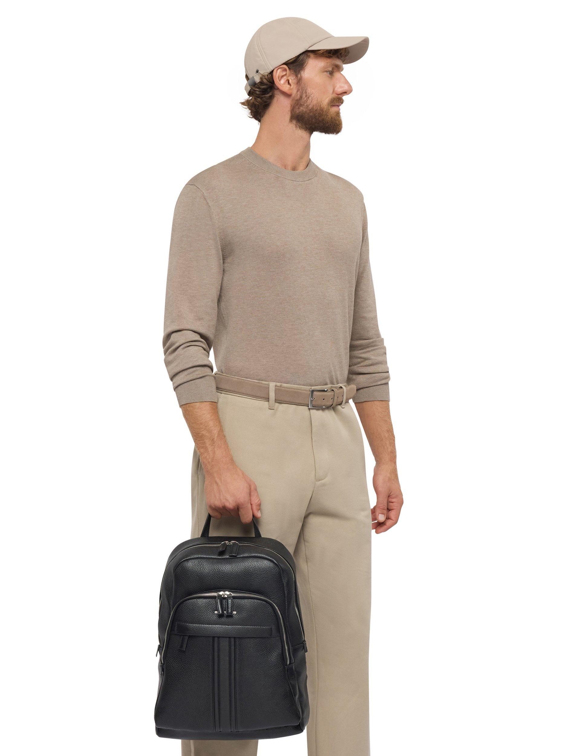 Yvan is a practical and handy unisex backpack that will be useful for everyday routine and travelling. Crafted from tumbled leather with shoulder straps and a convex back panel in mesh, it delivers comfort and breathability.