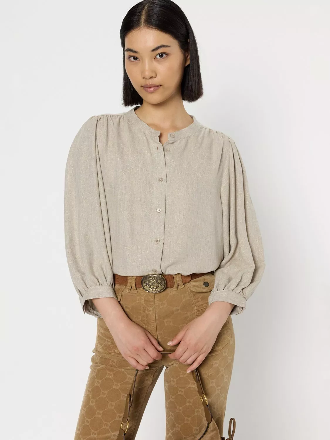 This blouse keeps you comfortable from morning meetings to leisurely afternoons. Three-quarter sleeves and a crew neck offer flexibility, while the subtle finish adds a hint of personality to your everyday style.