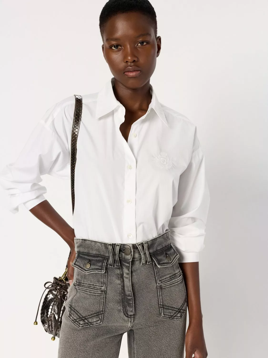The Gerard Darel blouse offers crisp cotton comfort with a smart collar and long sleeves. Its tailored design fits seamlessly into your day, making it ideal for meetings or brunch. Button fastening ensures ease, while its versatile look keeps you ready for every moment.