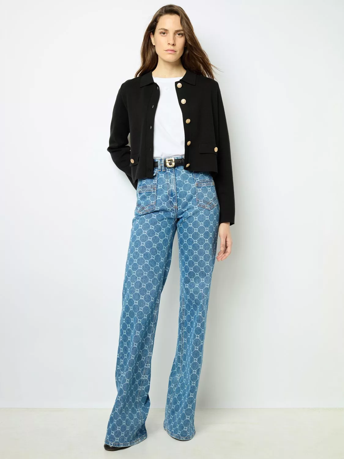 Evocative of 60s and 70s cuts, these bootcut high-waisted jeans from Gerard Darel reinvent the classics with their denim composition and boast a head-turning geometric print.