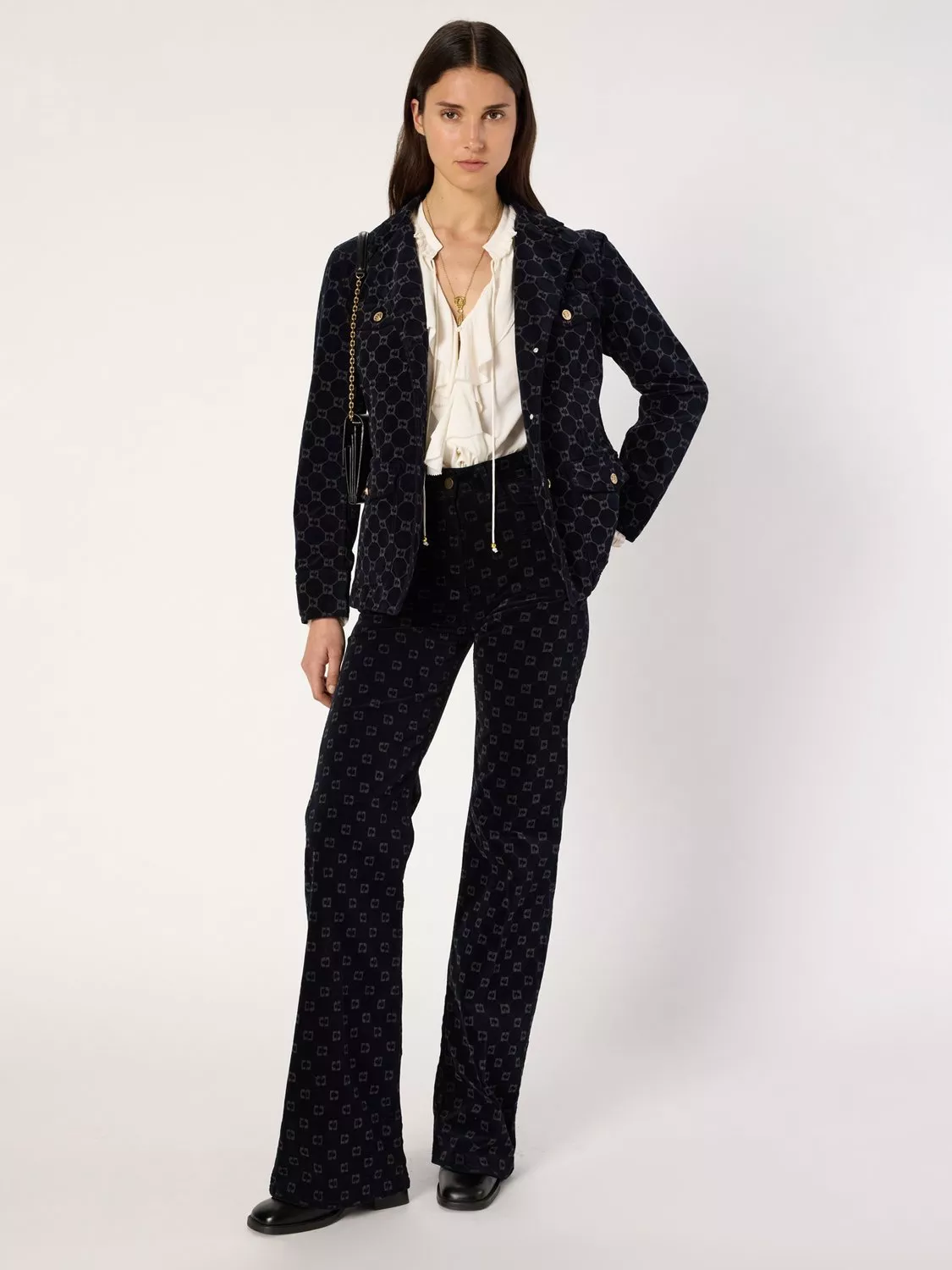 Close fitting up top and exaggerated with volume through the leg - a pair of logo printed flared trousers from Gerard Darel made from a stretch cotton fabric. This style is cut to sit mid rise with a button and zip fastening and hems that fall to a regular length.