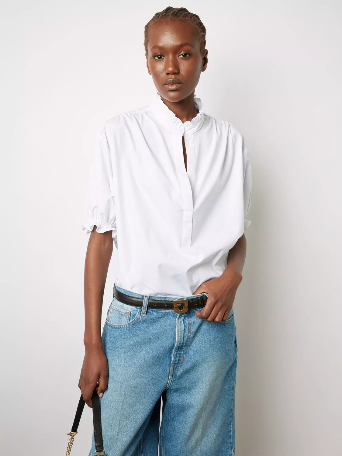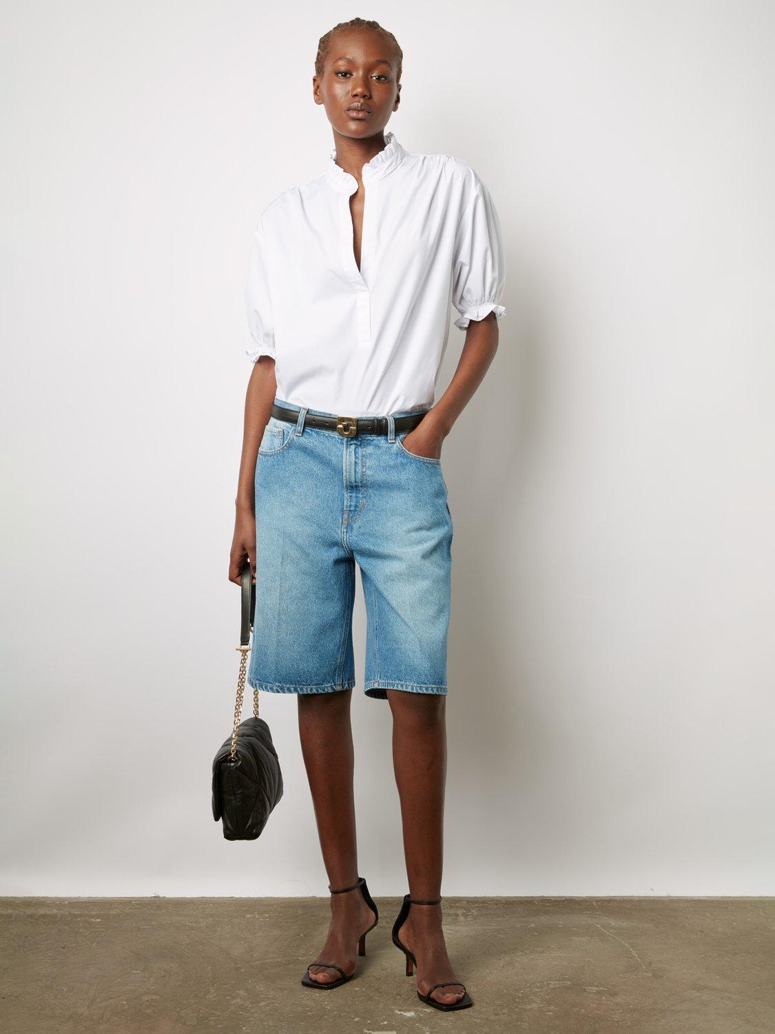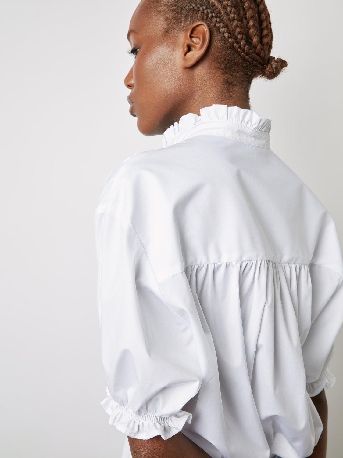 With a neat collared neck and elbow length puff sleeves, it's made from soft and breathable cotton and is an everyday wardrobe essential.
