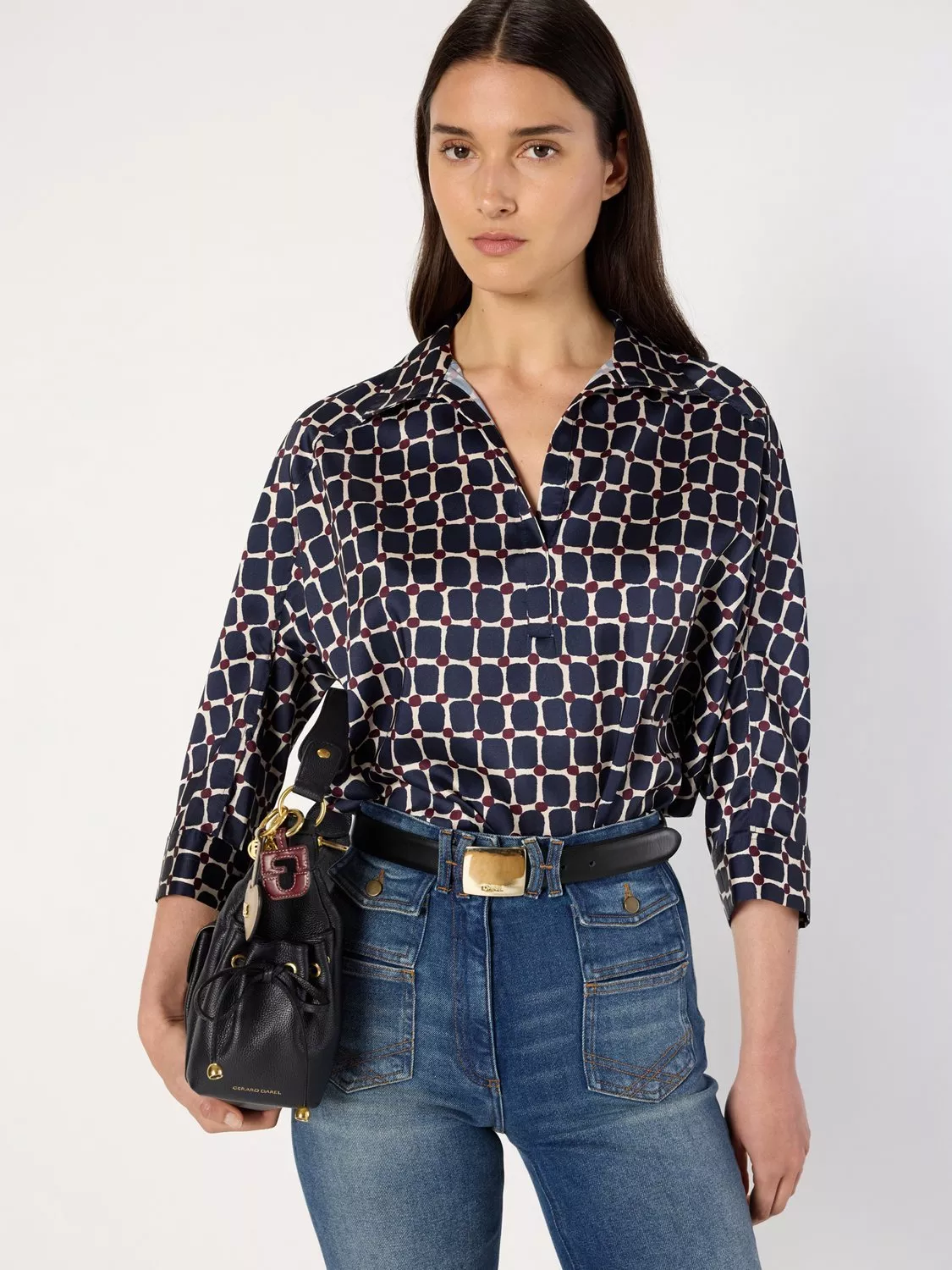 Gerard Darel presents a blouse designed to spark conversation and add flair to your day. The abstract pattern and V-neck offer style with ease, while three-quarter sleeves ensure comfort whether you're at work or out exploring.
