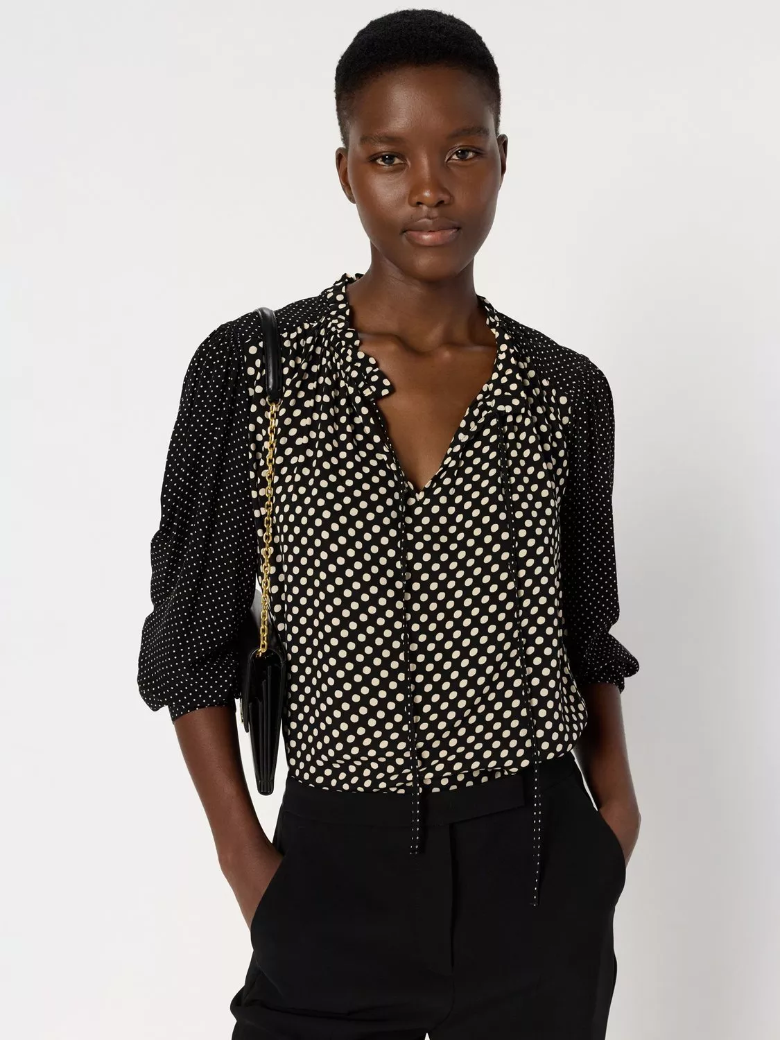Gerard Darel's spot blouse features a flattering V-neck and a relaxed fit, designed for comfort on busy days. Crafted from soft viscose, it's ideal for elevating your everyday look while keeping things effortless.
