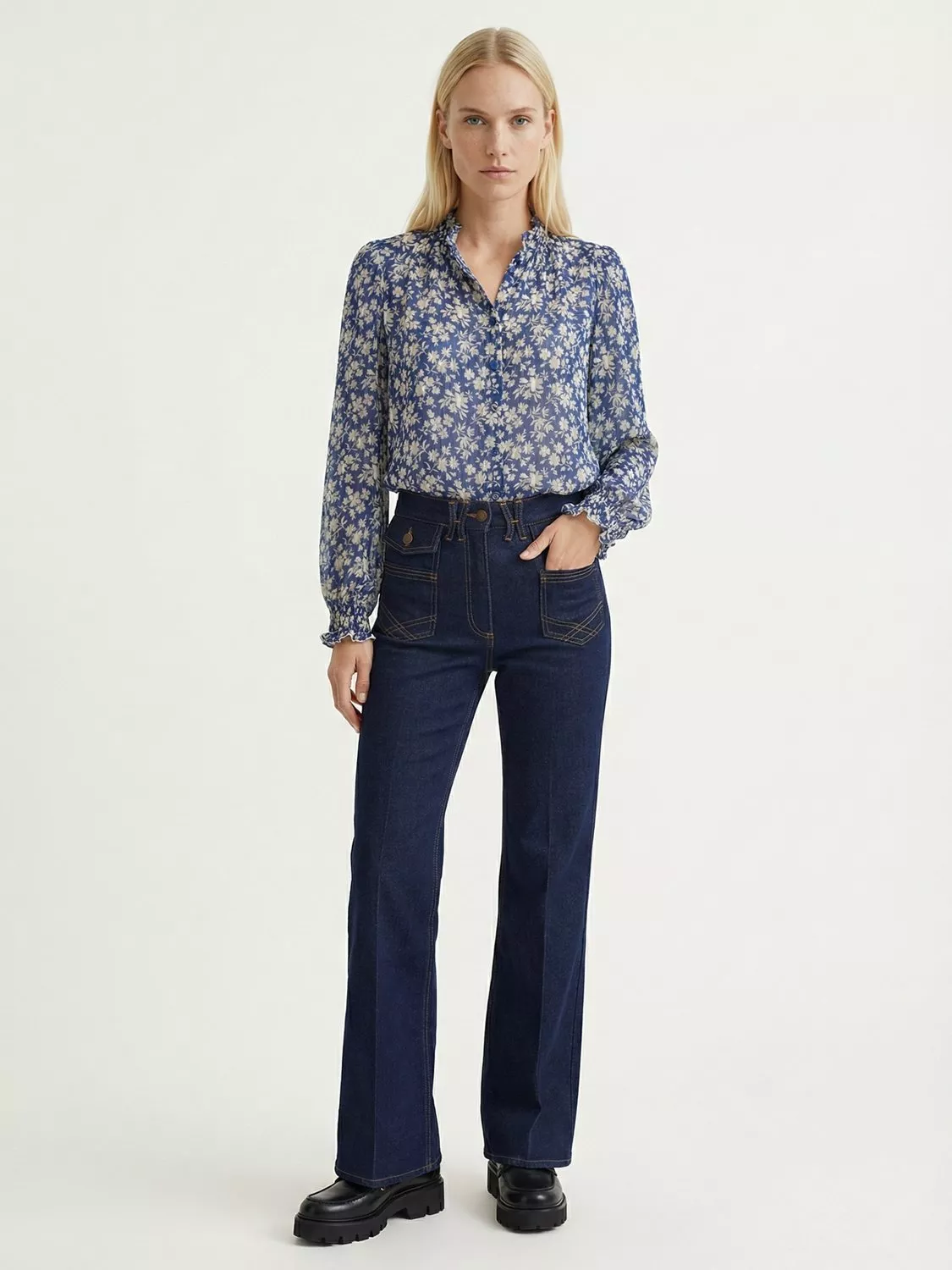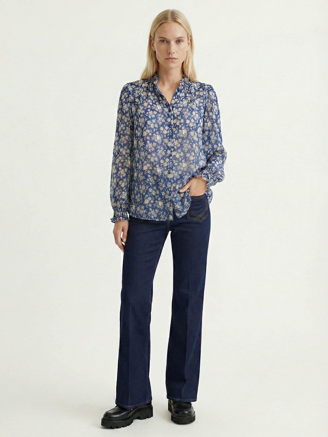 A lightweight blouse with a pretty frill neckline and all-over floral.