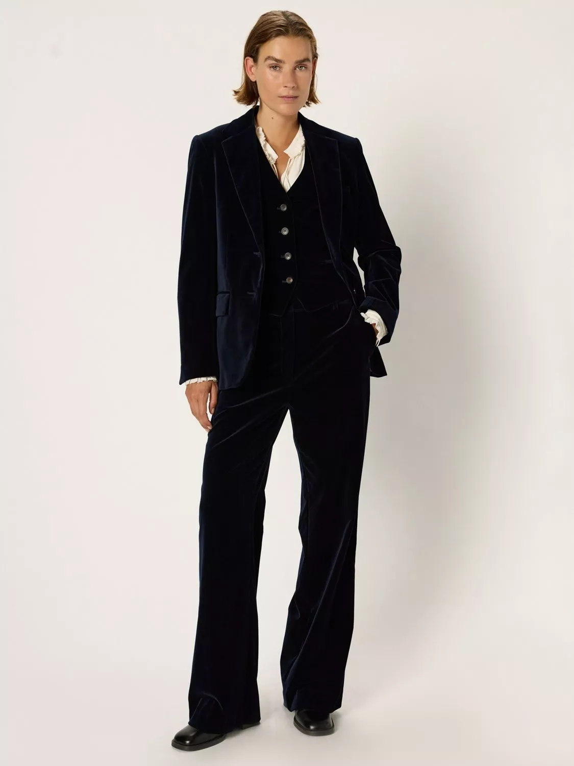 A pair of tailored flared trousers, crafted from velvet for comfort and style. Cleverly designed with a mid rise and zip fastening, they offer a smart look that suits both work and daytime plans.