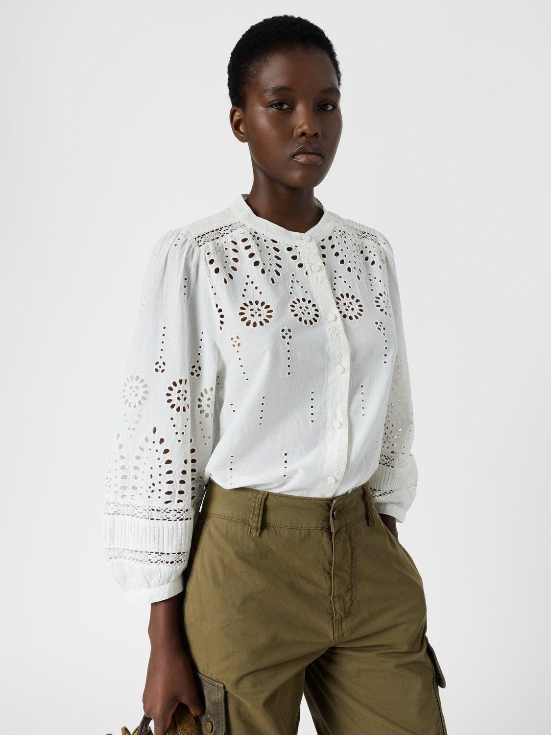An effortless blouse from Gerard Darel, crafted from soft cotton. With a round neck and long sleeves, it is finished with cutwork detailing.