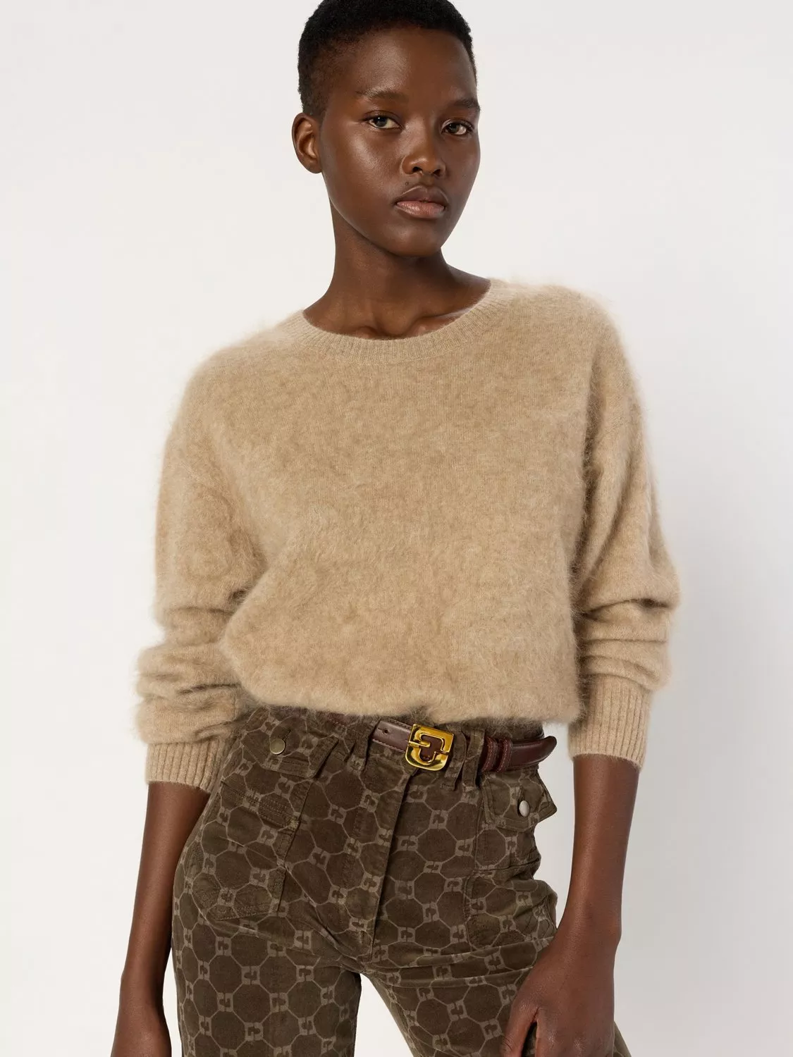 This soft and fluffy cashmere jumper adds warmth without bulk, featuring a round neck for everyday comfort. Its textured finish brings subtle interest while long sleeves keep you cosy in changing conditions. Functional and adaptable for any occasion.