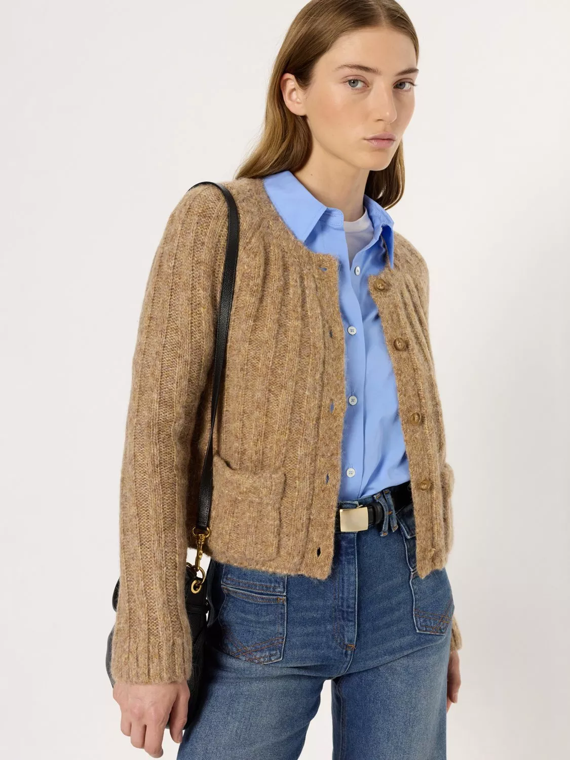 With a crew neckline for simple yet sleek style, this ribbed cardigan by Gerard Darel keeps the cold at bay with the wool-rich blend.