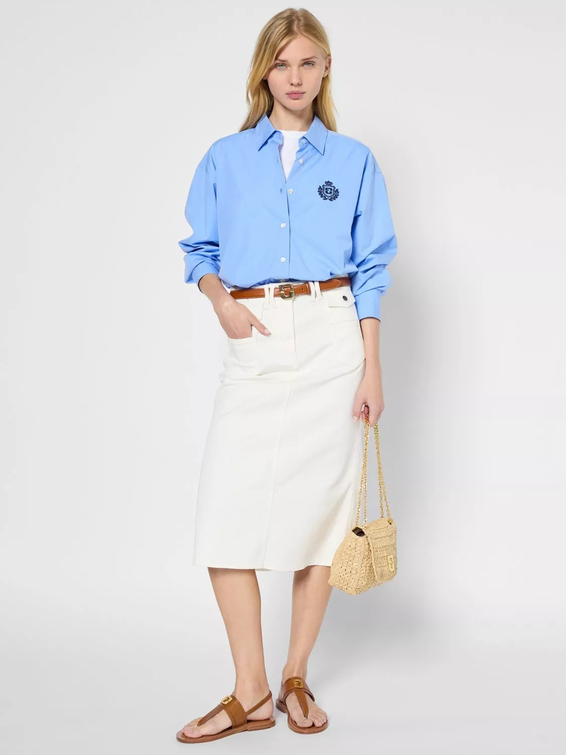 A tried-and-true favourite, this A-line denim skirt from Gerard Darel is bound to become a key addition to your line-up. Blended with cotton and falling to the knee, it's a breath of fresh air in casual combinations.