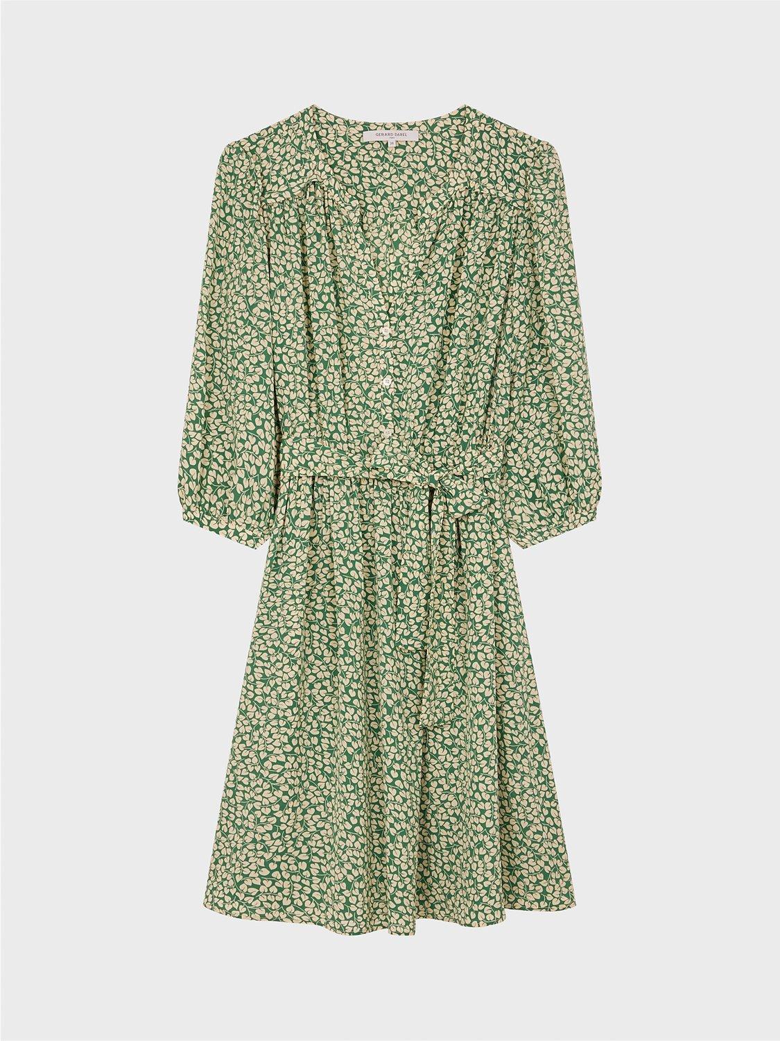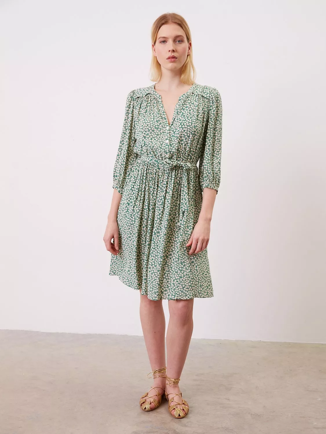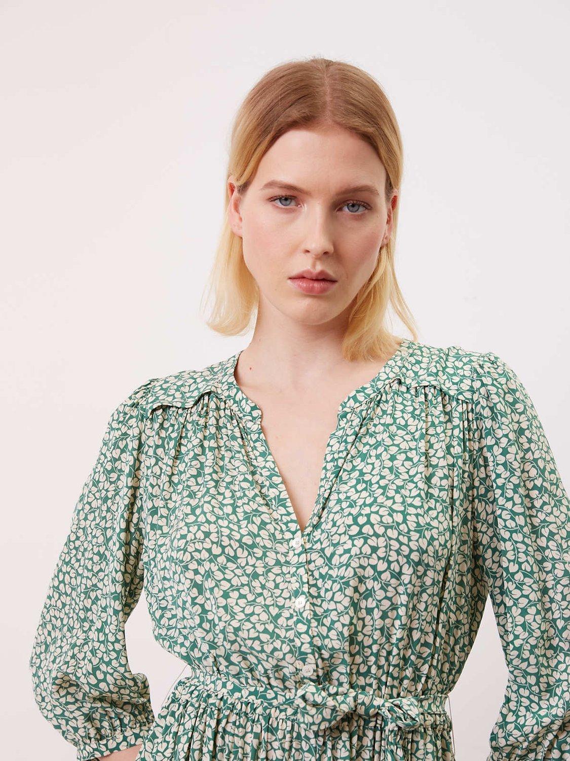Cut to a shirt shape with a floaty flare at the hem, this knee length dress from Gerard Darel is made from liquid-like viscose. Topped with a collar and three quarter length sleeves, it is topped with a leaf print.