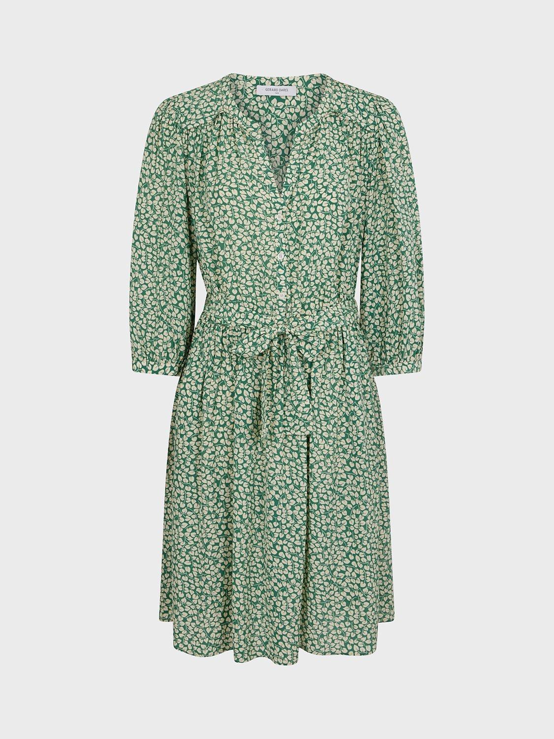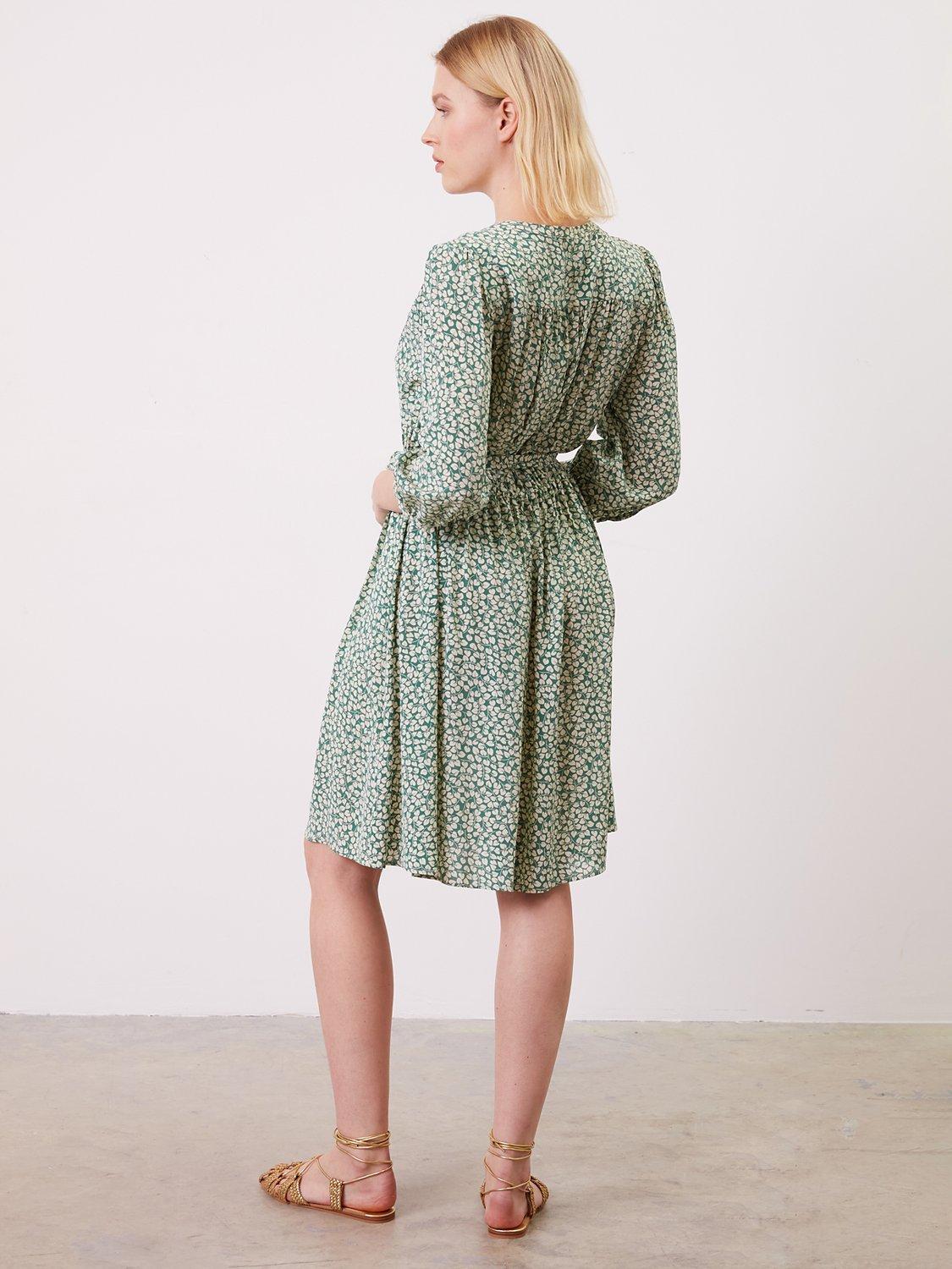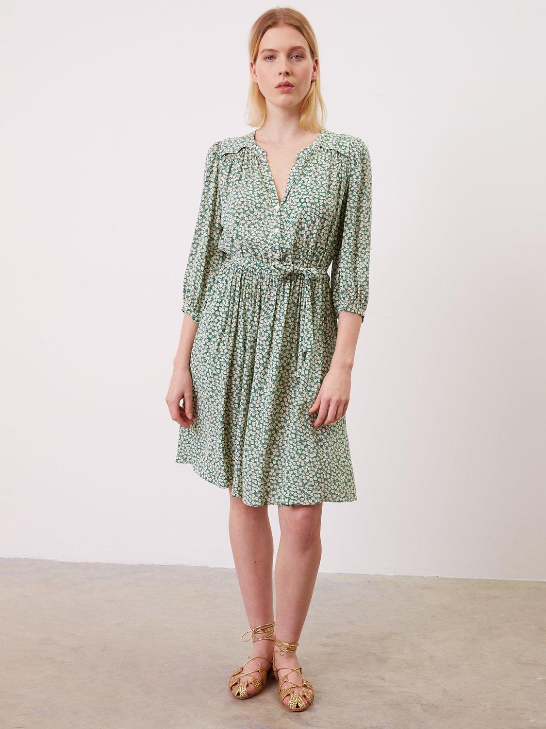 Cut to a shirt shape with a floaty flare at the hem, this knee length dress from Gerard Darel is made from liquid-like viscose. Topped with a collar and three quarter length sleeves, it is topped with a leaf print.