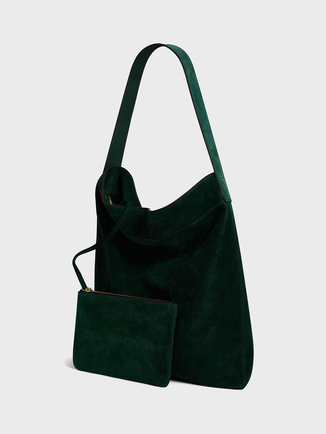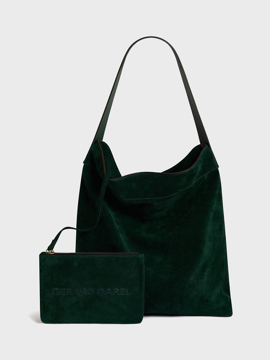 A smart shoulder bag perfect for work and weekends alike, choose this sleek piece from Gerard Darel. Made from smooth suede to a slouchy shape, it features an open top and a small inner pouch for receipts, cards and anything you want kept close to hand.