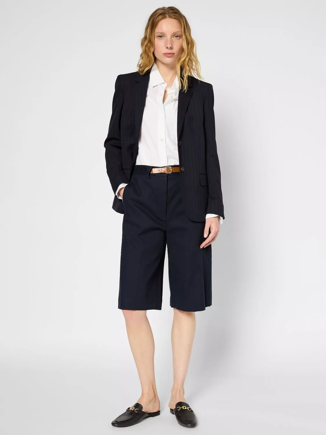 Made from a cotton blend fabric with a belted waist, they are designed with a slightly cropped hem.